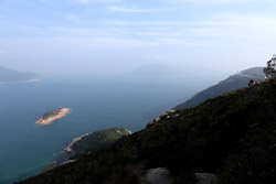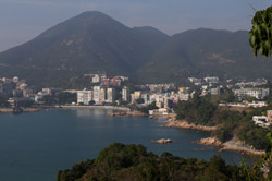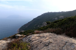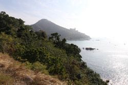 Heading deep into the countryside from Stanley village, a trail emerges next to the Stanley Fort bus terminus, skirting around the military base. Look back en route to see the village getting further and further away.