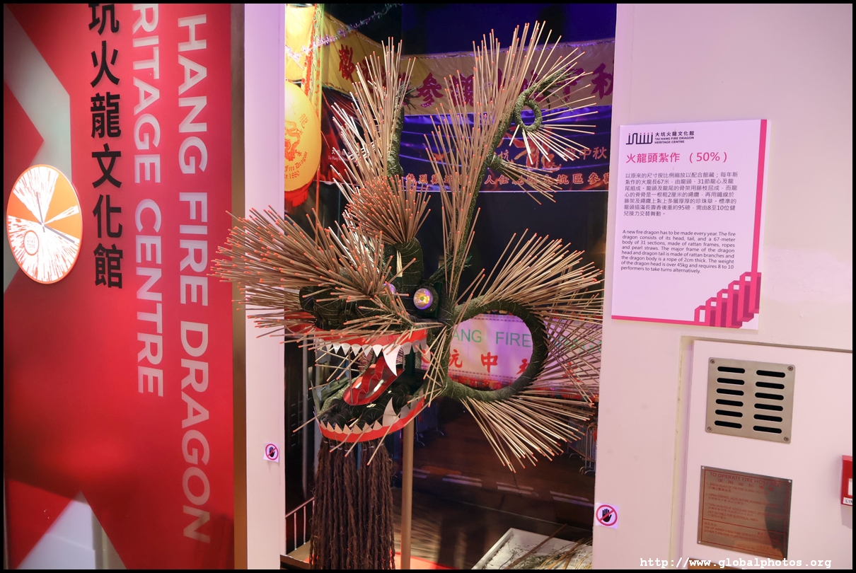 Located in the former Hung Shing Yi Hok, originally built in 1909 as a school for poor children and subsequently rebuilt after World War II, the Tai Hang Fire Dragon Heritage Centre is a small museum dedicated to the fire dragon dance that is still performed in this district. The dance was first performed during the mid-autumn festival in 1880 and repeated annually to pray for safety and peace. The story goes that a python was menacing the neighbourhood's livestock before the festival. It was hunted down and killed by villagers but a plague came after, killing many residents and prompting fears it was revenge from the python. A village elder claimed he received instructions from a dear that performing a fire dragon dance and setting off firecrackers can end the plague, which magically did happen, and the tradition continued. The fire dragon has a 67m-long body with 31 sections made from rattan frames, ropes and pearl straws. The head weighs over 45kg and requires 8-10 people to carry.