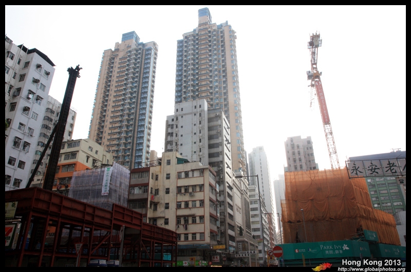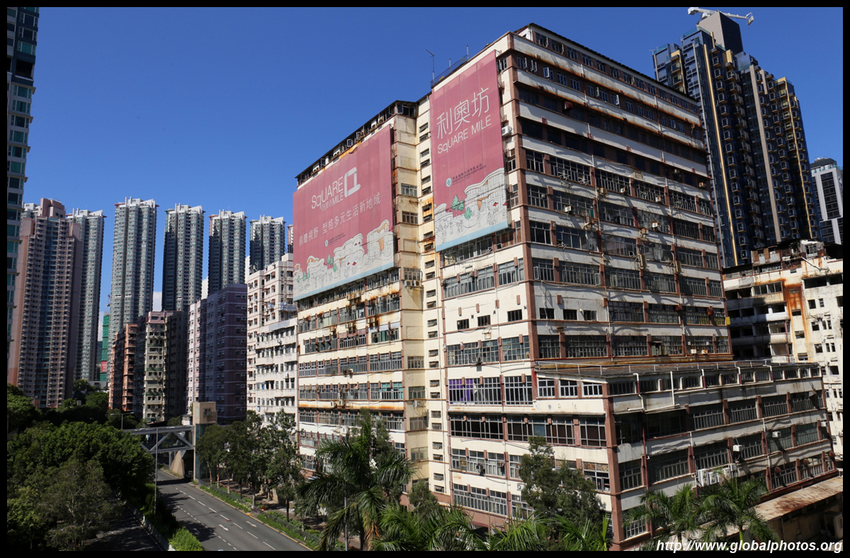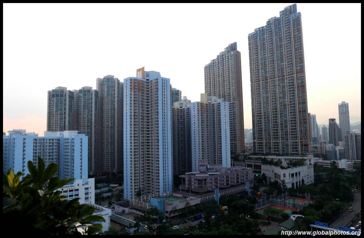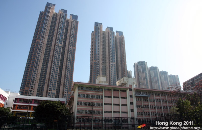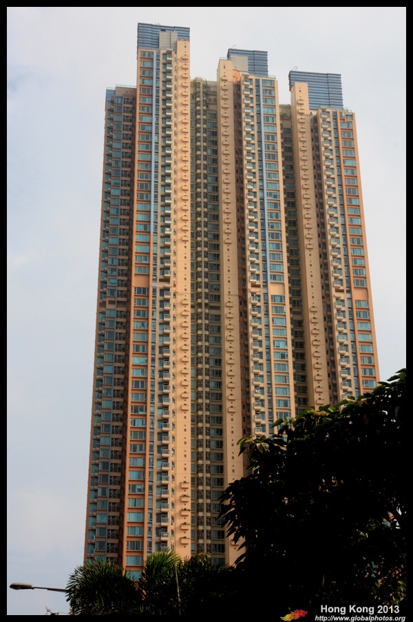 In this photo taken from Chun Wing Street, you can see the much shorter and older single tower of Hoi Ming Court left standing.