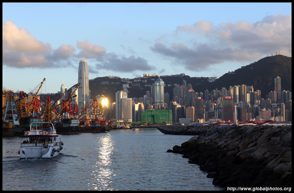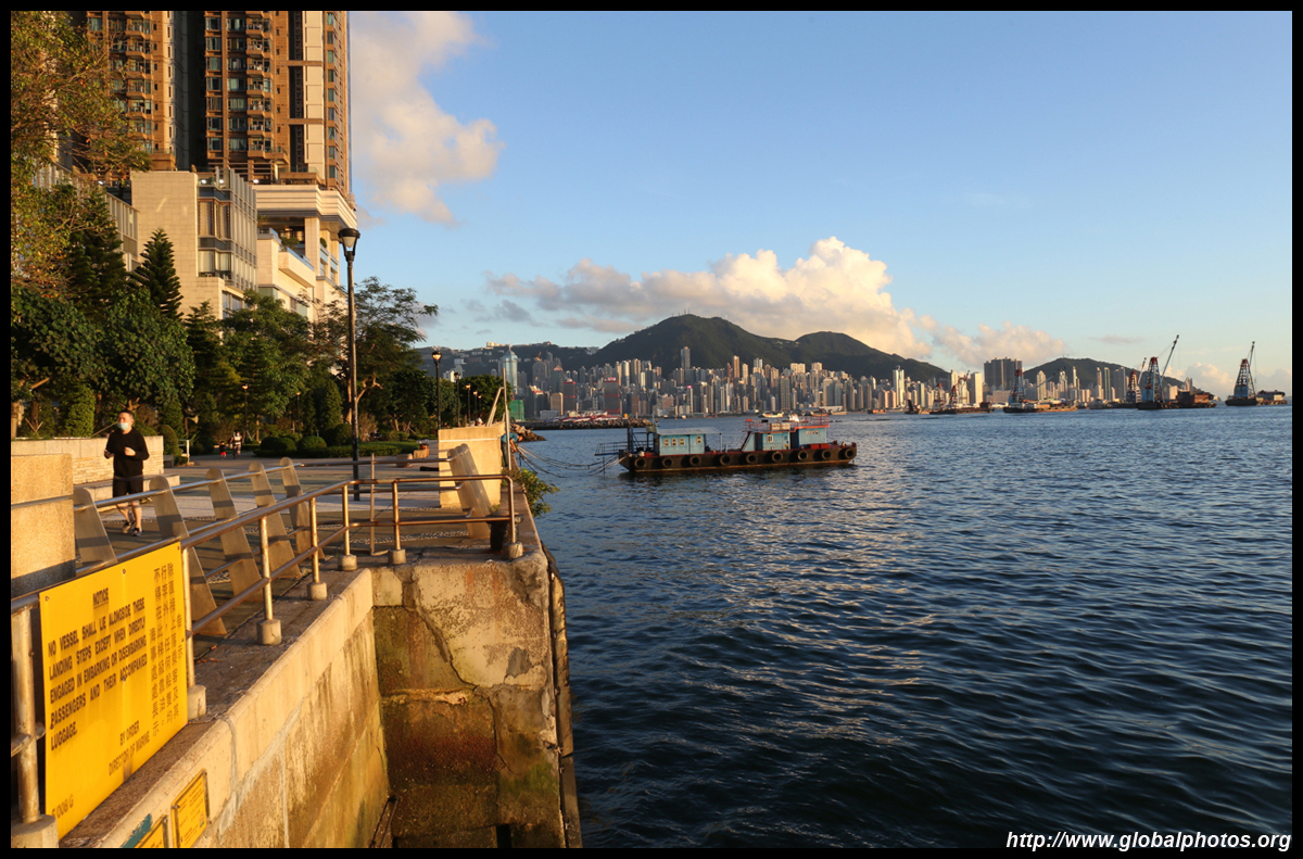 The western end of Cherry Street has a waterfront promenade along the typhoon shelter with skyline views.
