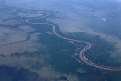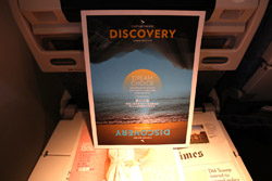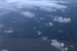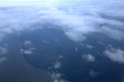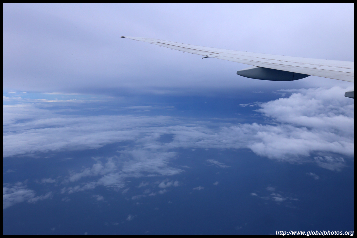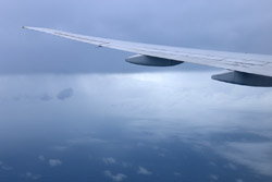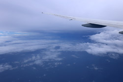 Several hours into the flight, I eagerly awaited the Equatorial crossing. Outside, it was still cloudy but the ocean is just beneath us.