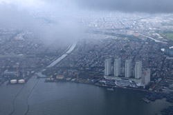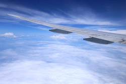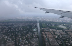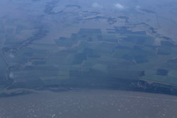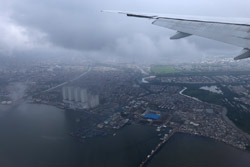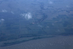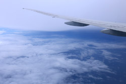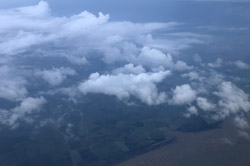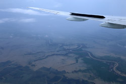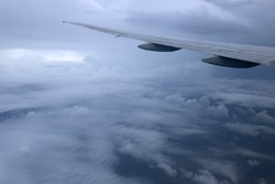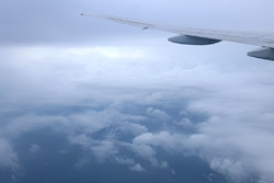 We departed on-time for the 4+ hour flight. I managed to stay awake to photograph the take-off, but by now, the skies have gotten grey.