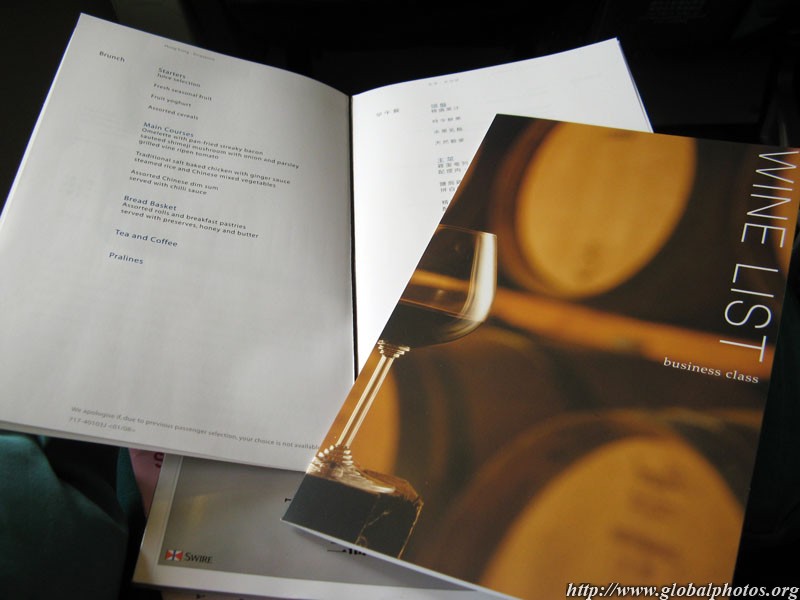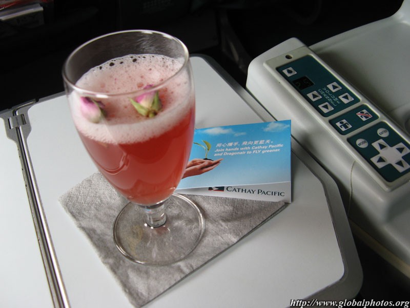 Business Class was fairly full that Sunday morning, and the FAs were fairly good in keeping us at bay. They didn't have Cathay Delight on this flight, at least not according to the menu, so I got a different drink for a first try.