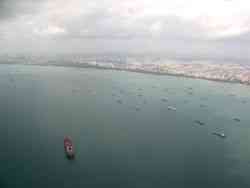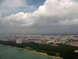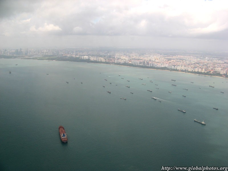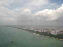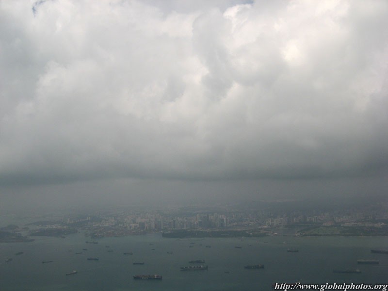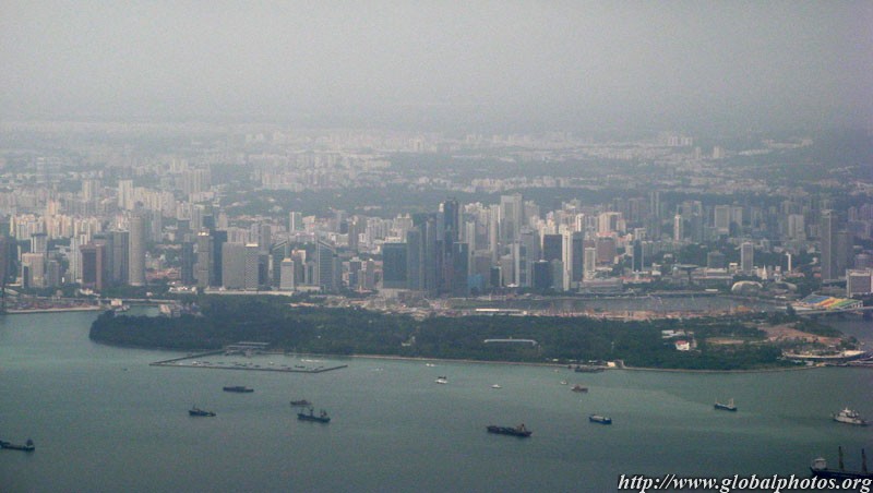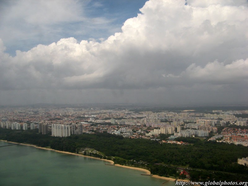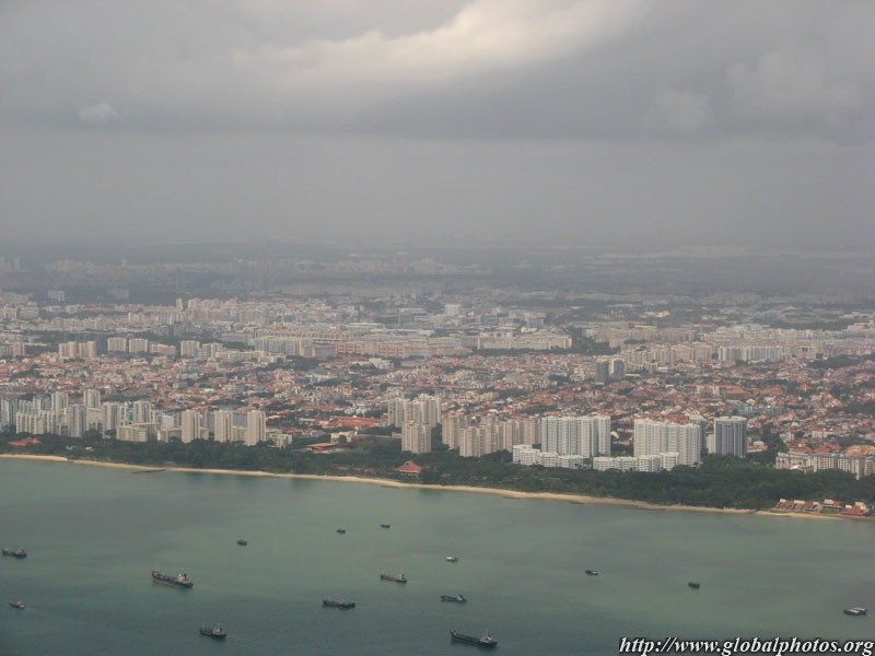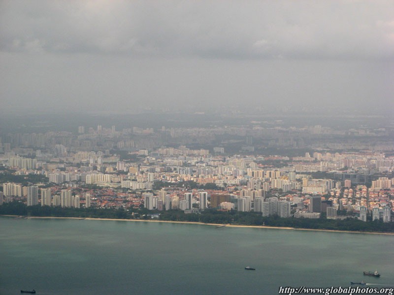 I've flown to Singapore a number of times in 2007, and I don't recall ever landing from the south. As the plane turned 180 degrees to make the southerly approach, I was given a full view of the skyline and much of Singapore's cityscape.