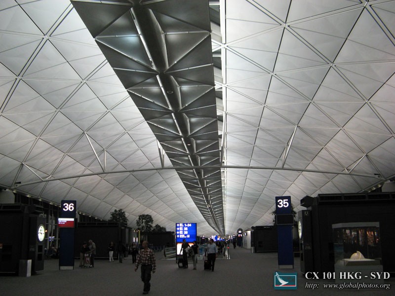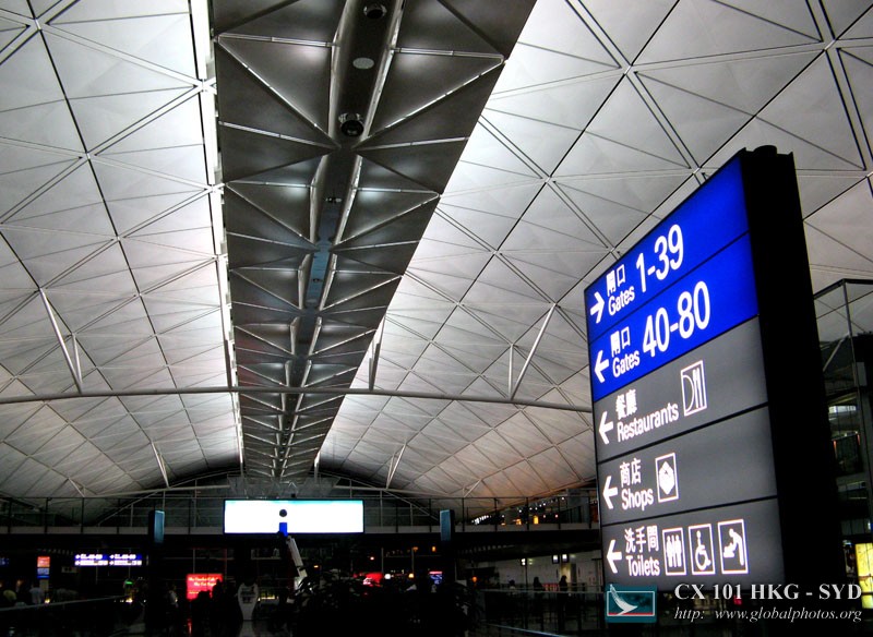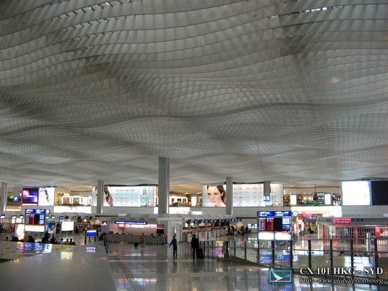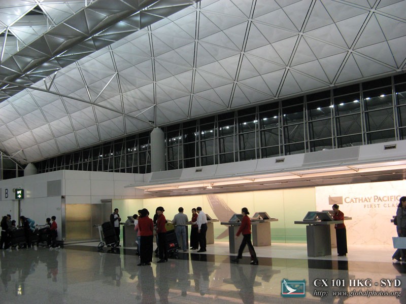 I decided to head to Sydney for Easter, and flew out on the last flight of the day. I'm not so good with red-eye flights, but hoped for the best with Cathay's Business Class seats. Check-in was smooth, although I didn't get to use the neat First Class check-in counters below :
