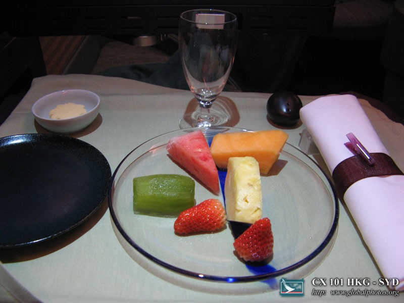 I wasn't particularly hungry so late into the night, so I settled for breakfast only, with an assortment of fruits and dim sum. I seem to encounter dim sum every time I get a Cathay breakfast.