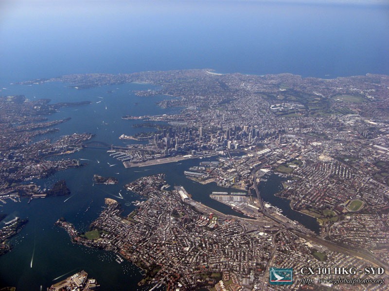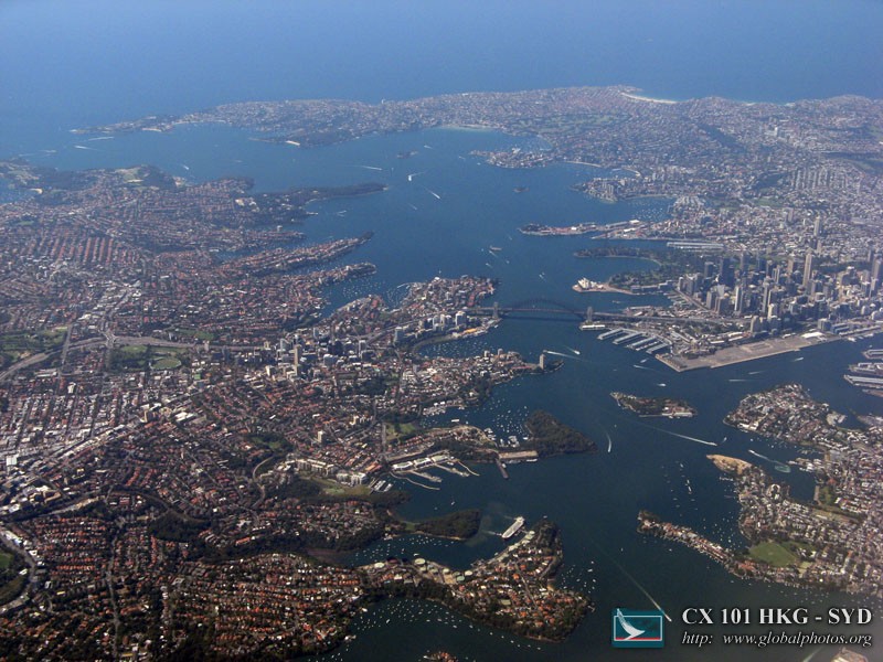 We approached Sydney from the west side, passing through the city centre, the airport, and then looping around to land from the south. With a window seat on the left side, I got a lovely view.