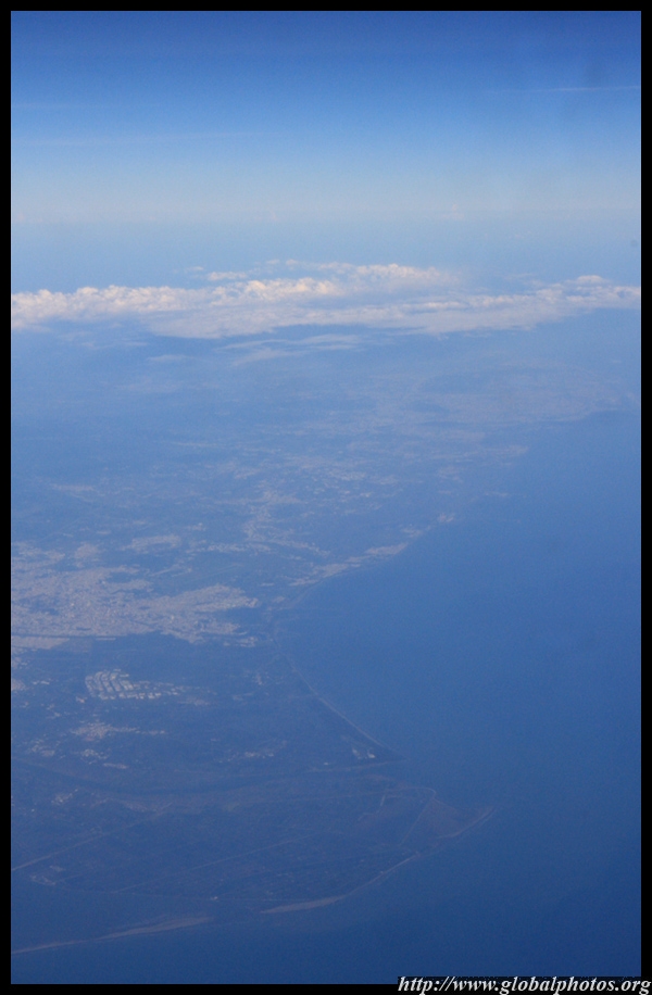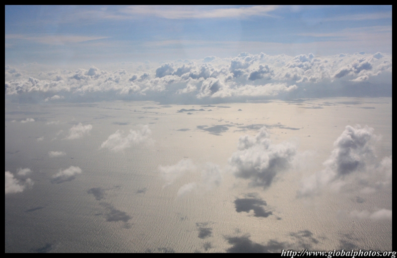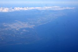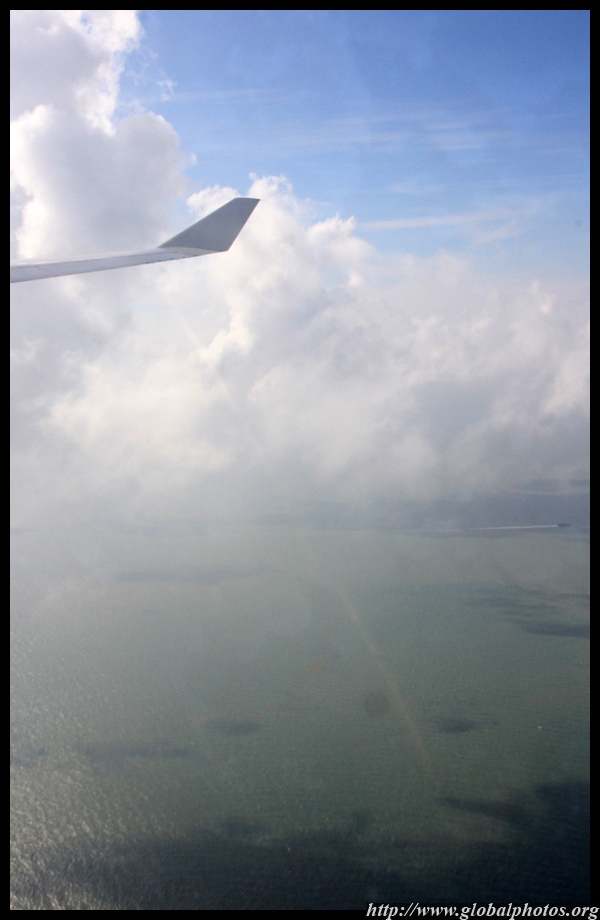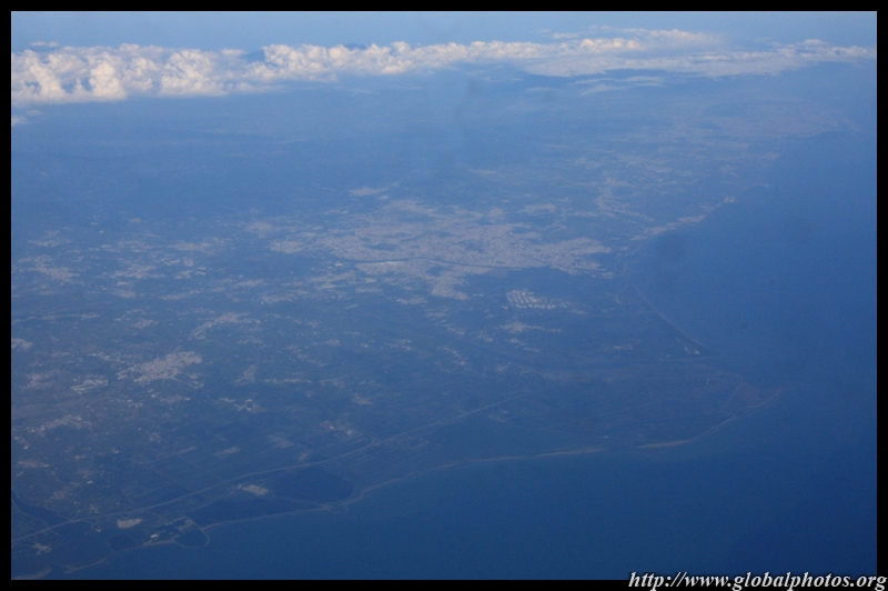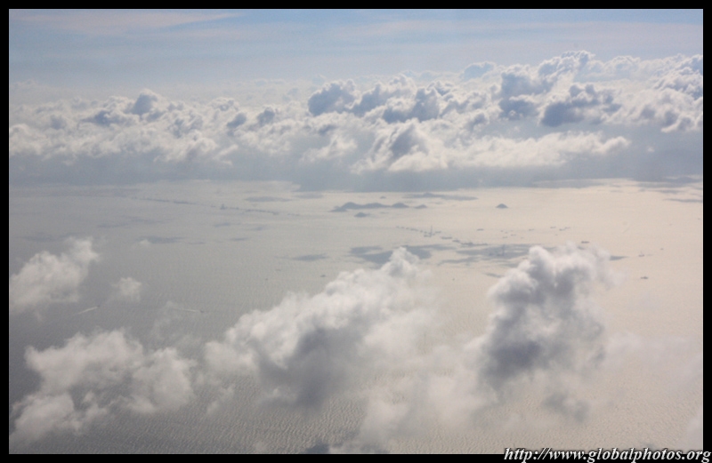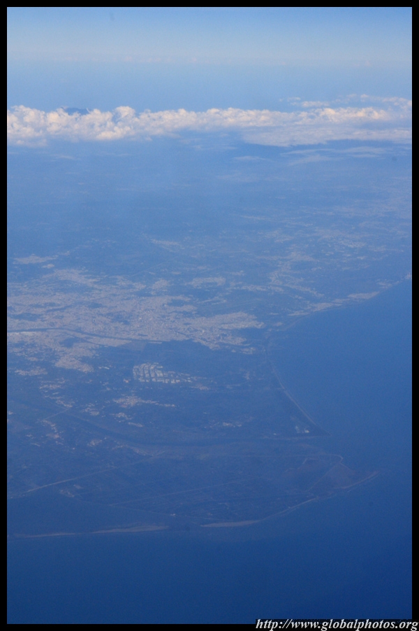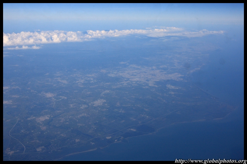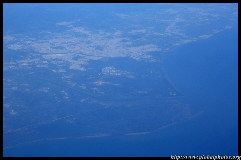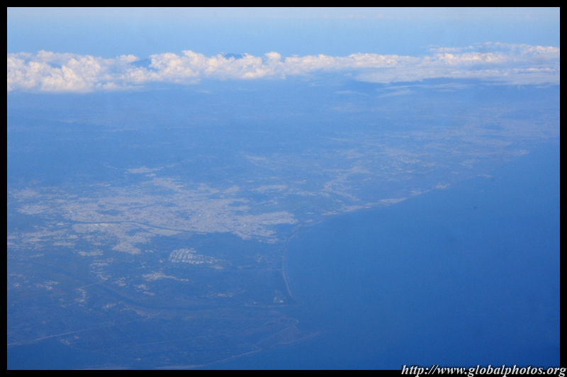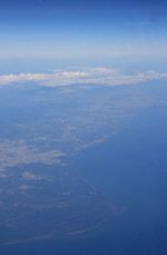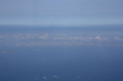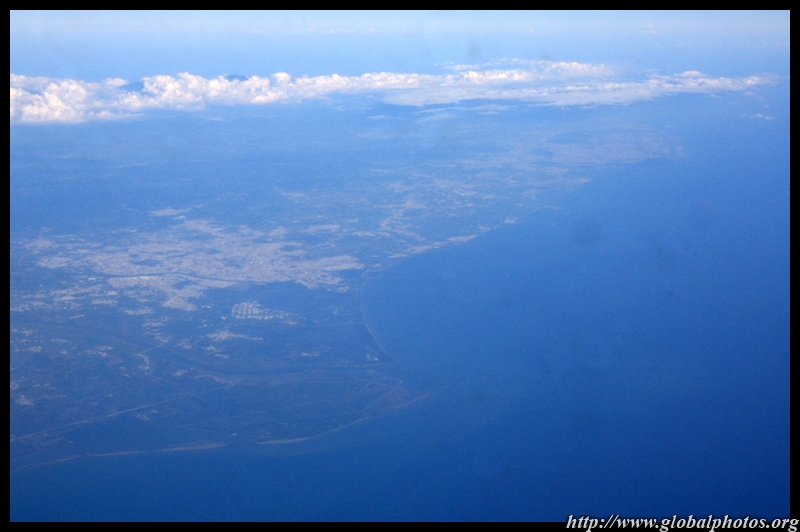 We pushed back about an hour behind schedule and it was a short taxi around an empty airport and we soon took off towards the south into the sea. I purposedly picked a left window to prevent getting into the sun's way on today's late afternoon flight, but that meant I would miss many land shots as we skirted along the coast.