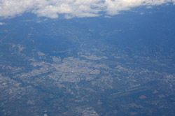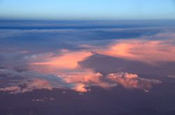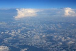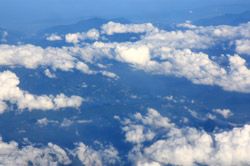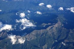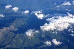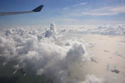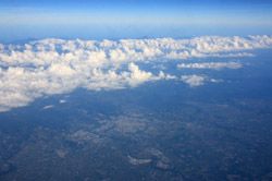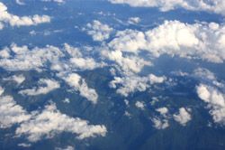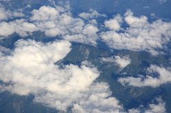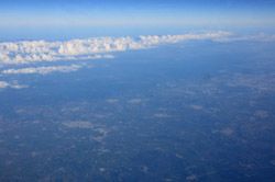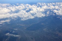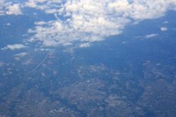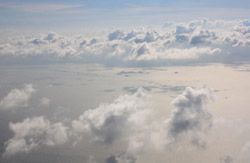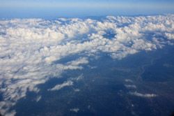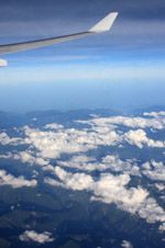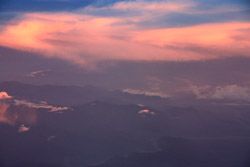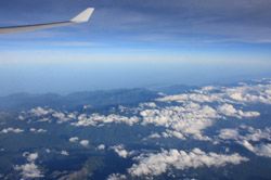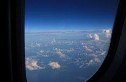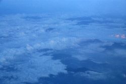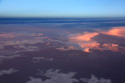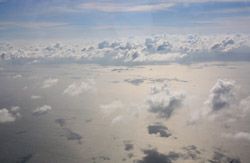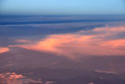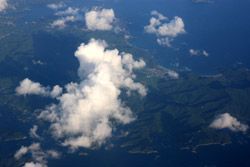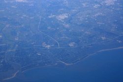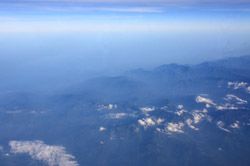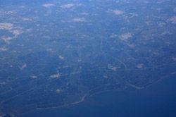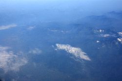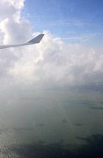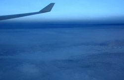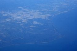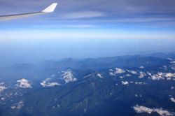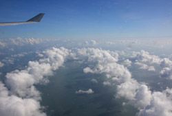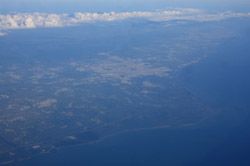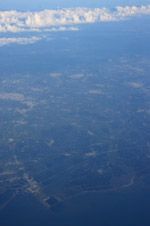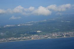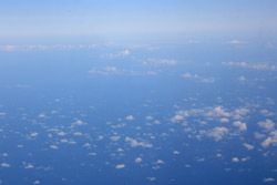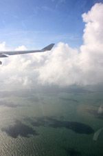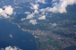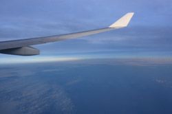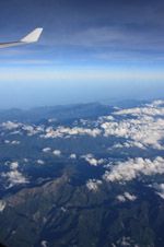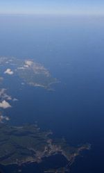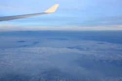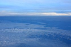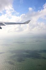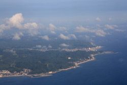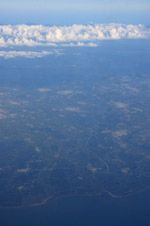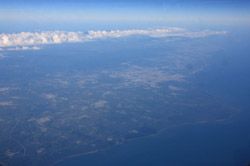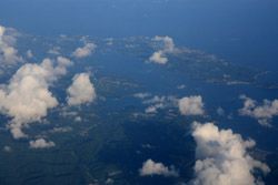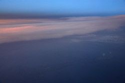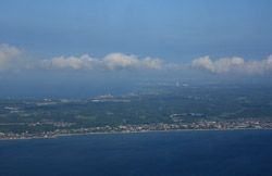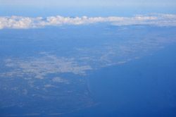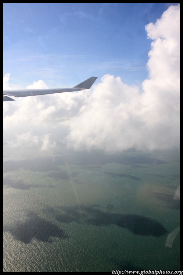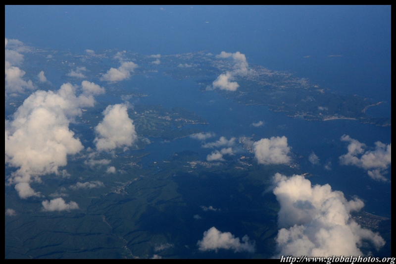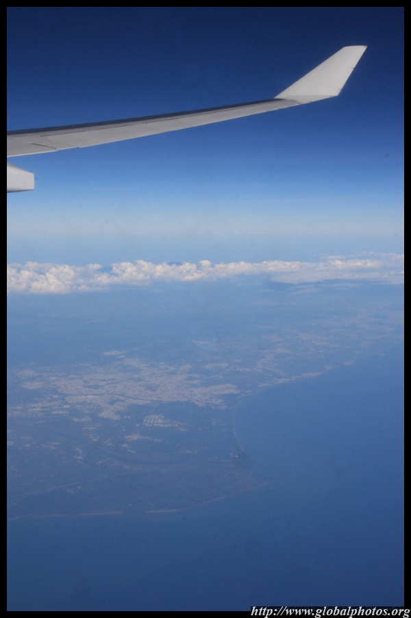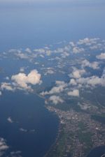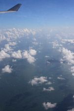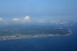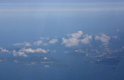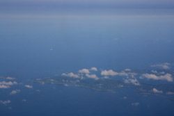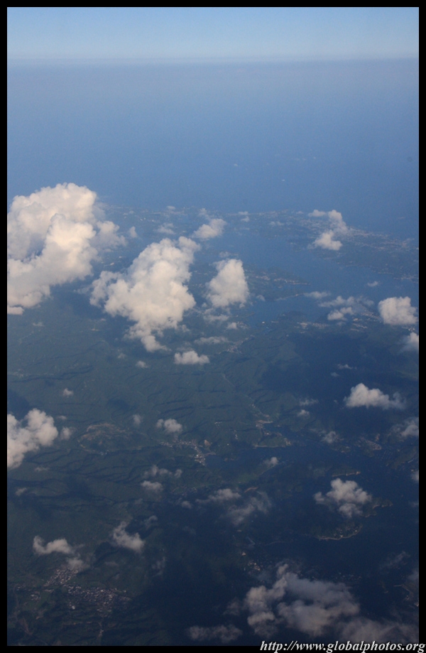 We pushed back about an hour behind schedule and it was a short taxi around an empty airport and we soon took off towards the south into the sea. I purposedly picked a left window to prevent getting into the sun's way on today's late afternoon flight, but that meant I would miss many land shots as we skirted along the coast.