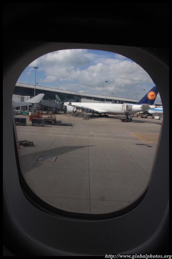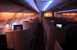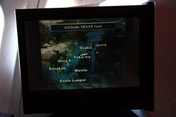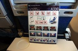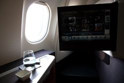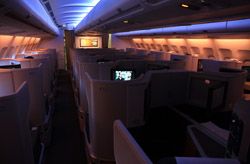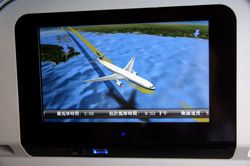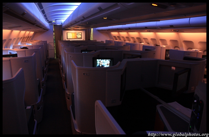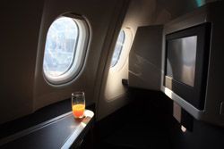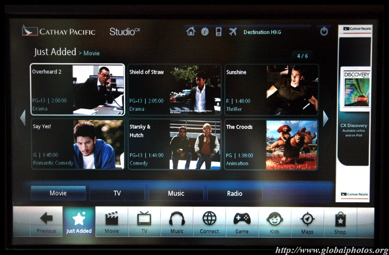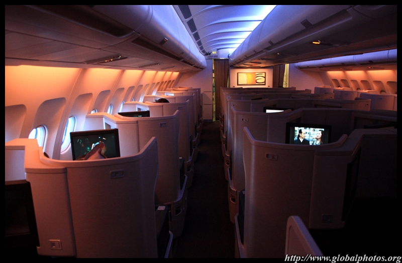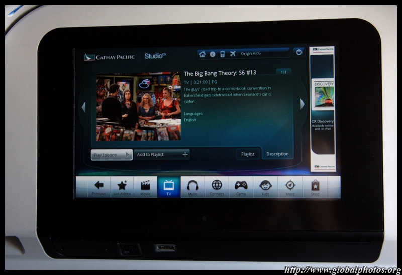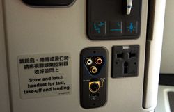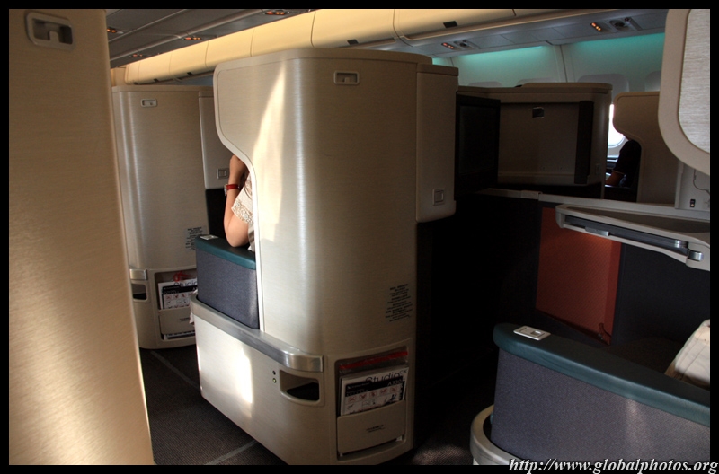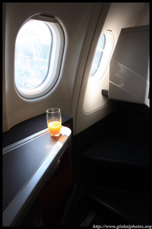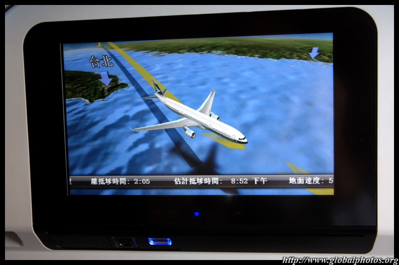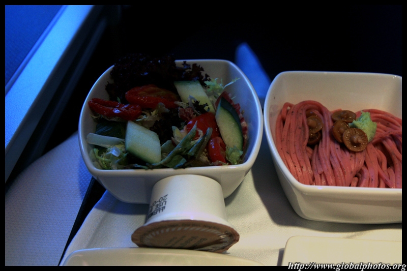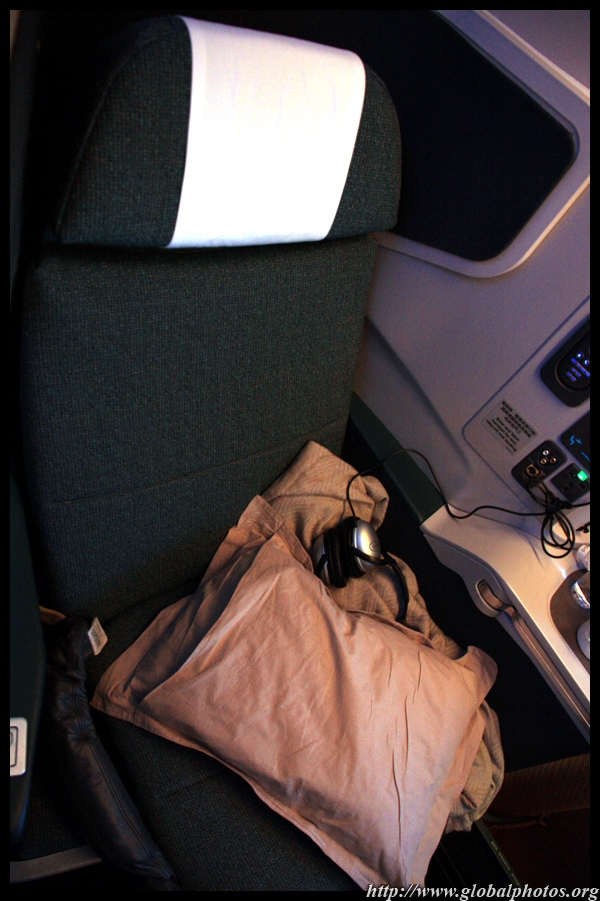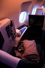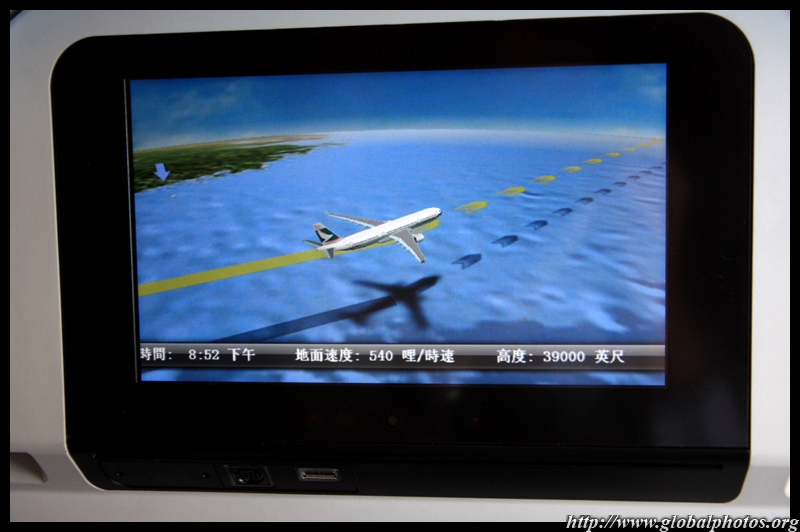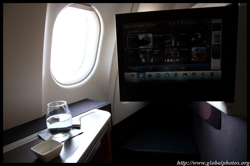 We finally boarded at around 16:30. The line was of no concern to me since I was flying Business Class today. I sat at the last row of the first J cabin, which featured a lovely lie-flat bed and iPod connector to play media on the large TV screen. I noticed the 2 windows were not aligned with the seat so I had to stretch out a bit to get a view of the outside, but I was too lazy to swap for another window seat.