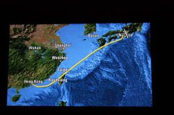 After dinner, I watched the sunset and the clouds thicken above the East Asia Sea. We skirted south of the Japanese coast and then turned north for landing after a 180-degree turn. There was some moisture in the air but not too many bumps along the way. A light drizzle greeted my arrival at Chubu.