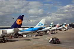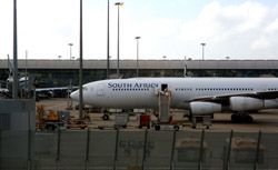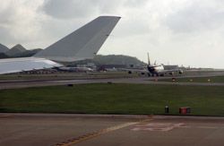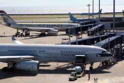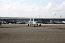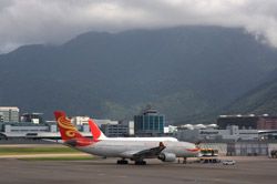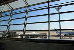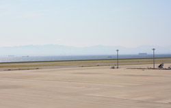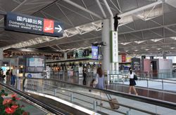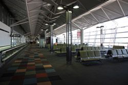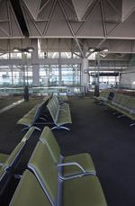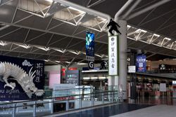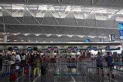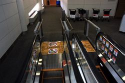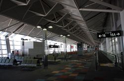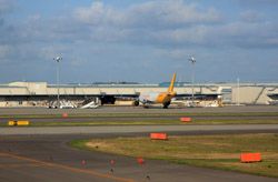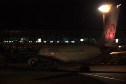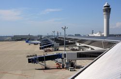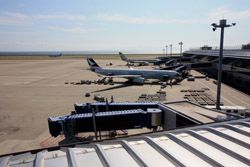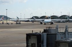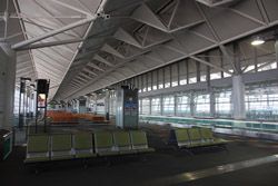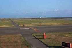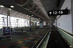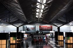 The airport's shopping mall is situated one floor above check-in, with plenty of choices for last-minute souvenirs. I wasn't particularly interested and headed past the mall to the observation deck. Airplane activity was very quiet, with only a handful of aircraft on the stands. The ledges are all fenced up and an SLR lens cannot fit through, while several security officers patrolled the deck in their Segway vehicles.