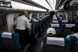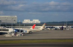 Chubu is a nice new airport situated on an artificial island in Ise Bay. The railway station is a short walk by covered escalator to the check-in desk. With my Business Class ticket, I didn't have to wait in the priority line at all, and soon I departed with my boarding pass and lounge invitation.