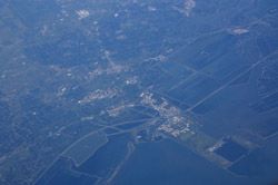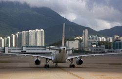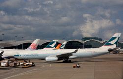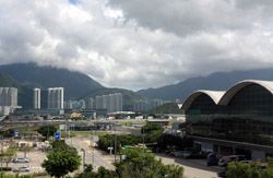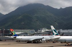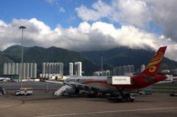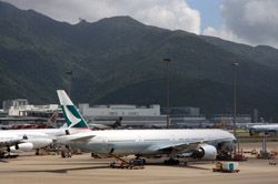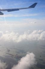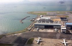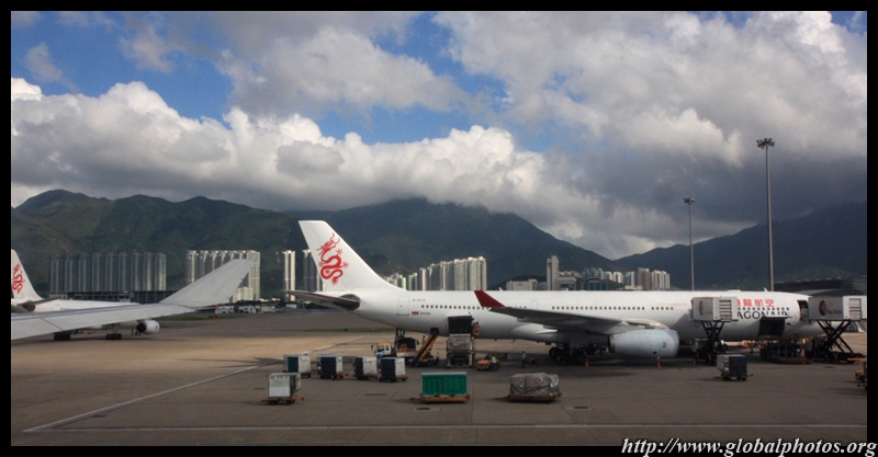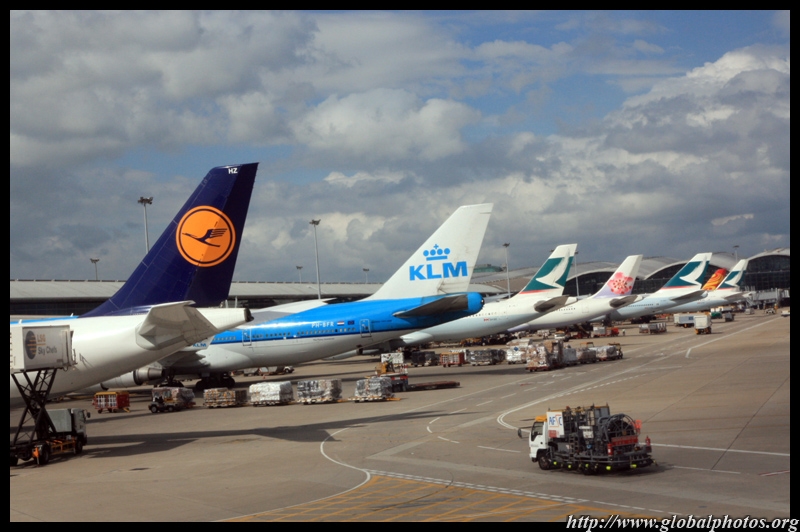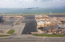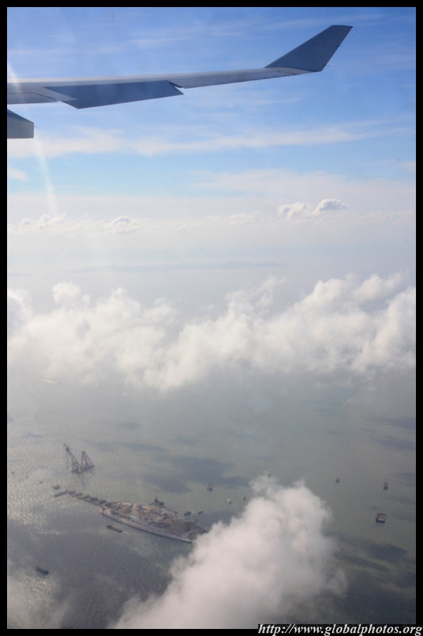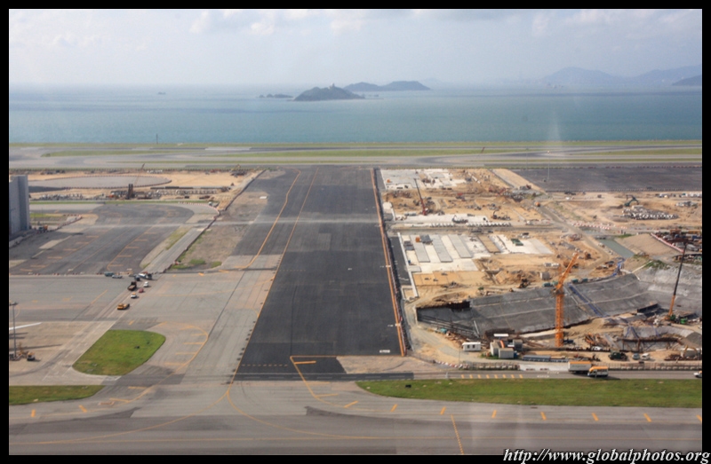 Construction of the mid-field terminal is well under-way. I had hoped for an eastward take-off to capture aerials of Hong Kong Island with my right window seat. By that time of day, the sun would be glaring at the left windows.
