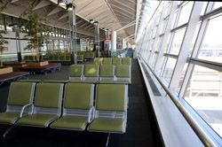 A long line had snaked from the boarding gate by the time I arrived. I headed past them and noticed the rest of the terminal was empty, with no other flights departing from that section at all. Nagoya is a fairly quiet airport and I had plenty of other chairs to choose from to absorb the sunshine and barely any movements on the tarmac.
