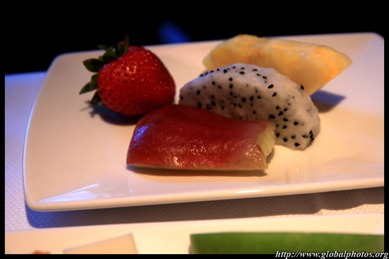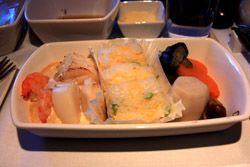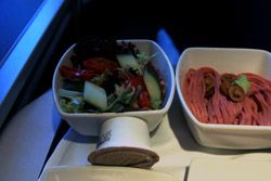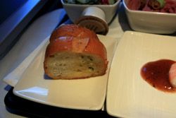 The fruit and cheese cart rumbled by afterwards, and then ice-cream. I was completely stuffed and rested in my seat watching a movie to digest. For a 3.5 hour flight, I was quite happy with this full meal and the crew even came by after with hot towels.