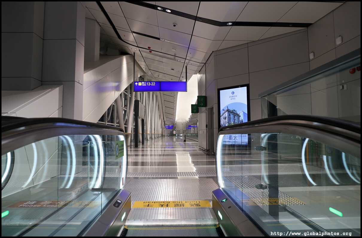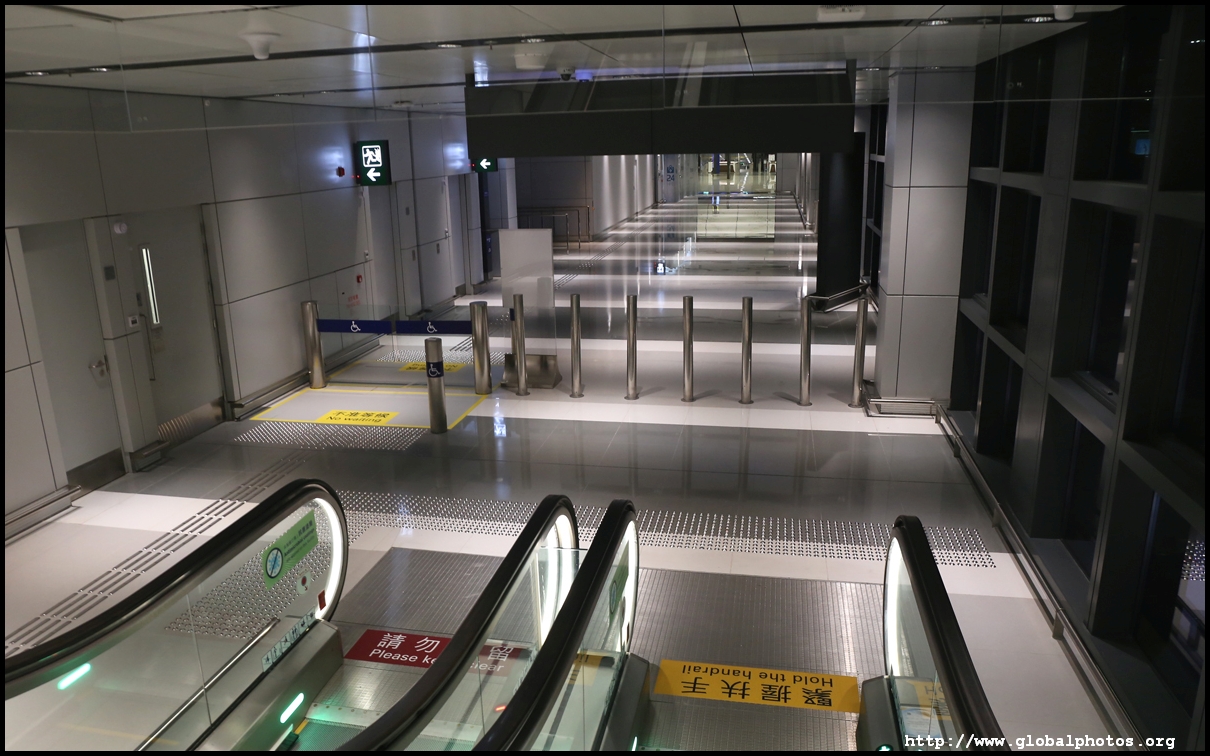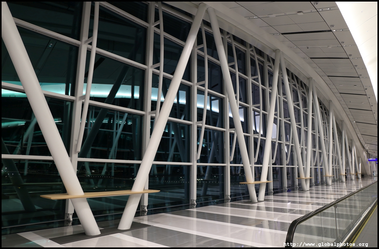 However, the airport has changed a lot more since then. A new sky bridge just opened connecting to the North Satellite Terminal. I took the escalators up to see for myself, although with darkness outside, there wasn't much in terms of view.