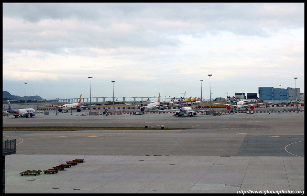 Upon entering air-side, a staff took the temperature of every passenger, hoping that anyone would a fever could be held from boarding. However, there are also reports nonsymptomatic people with the virus can also infect others. Security and immigration formalities didn't take long and everyone seemed to be wearing a face mask. After the formalities, I went to the series of alcohol gel dispensers laid out on a long table to help myself, then browsed the windows to see the new bridge's progress, only a few weeks after my last visit in January.