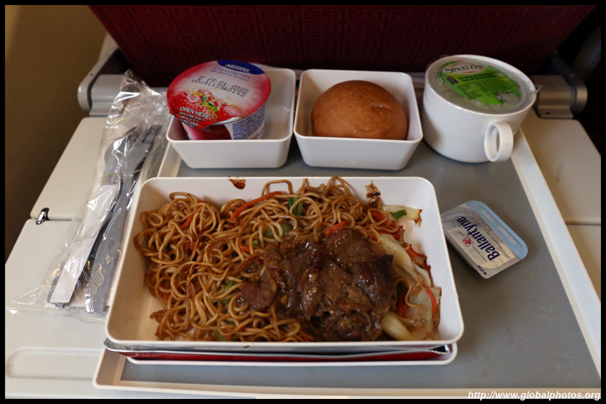 The crew were still professional despite dire news about their jobs and unpaid leave that they now have to take. They announced the meal service would be amended for health and safety reasons, but they still offered 2 hot choices for breakfast. I chose the Hong Kong style beef stir-fried noodle, which was a bit salty so the yogurt was a good offset. I wished they had a disinfectant wetnap in the cutlery pack though.