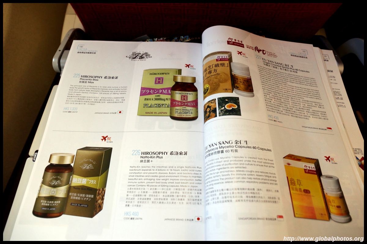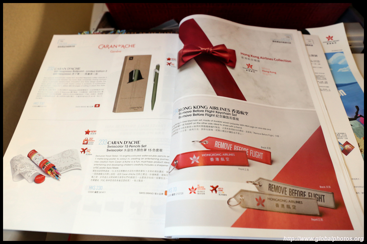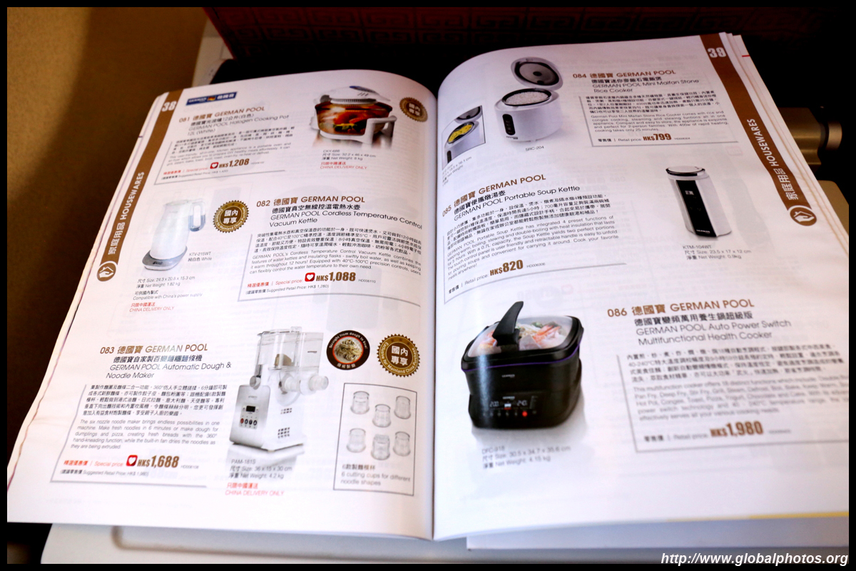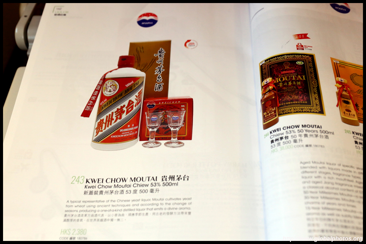 The duty-free catalogue is thick and full of all sorts of querky products. The crew had announced deliveries to Hong Kong and mainland China addresses was possible, and purchases of well over HKD$4000 would earn a 20% discount. They even sold Taiwanese alcohol.
