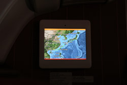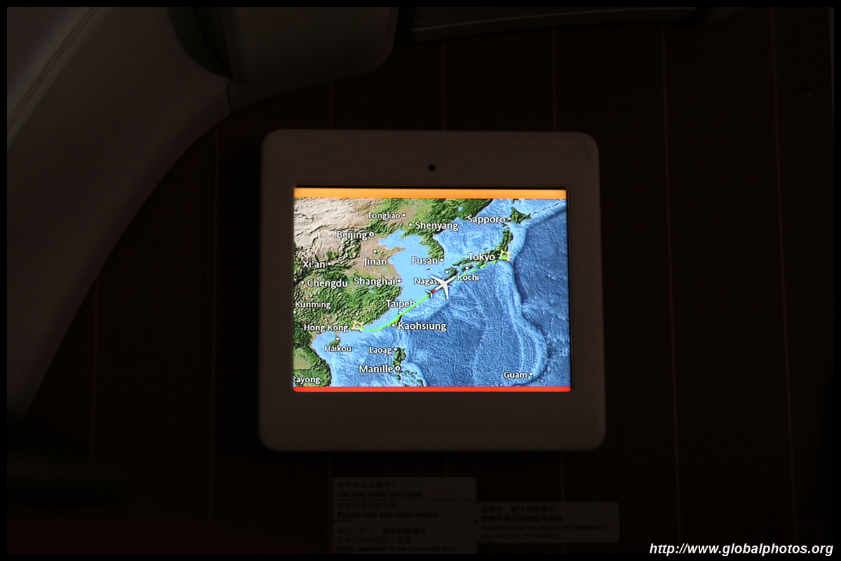 Having paid for a seat up front and with a left window hoping to catch some aerials over Japan, I noted the first few rows, the dedicated paid-for seating area, was relatively empty. My window was scratched up though, but I had the row of 2 all to myself and felt glad I had spent that extra HKD$85 for that added space and distance from other passengers. We ended up pushing back a few minutes early and the flight deck announced a flight time of just 3h21.