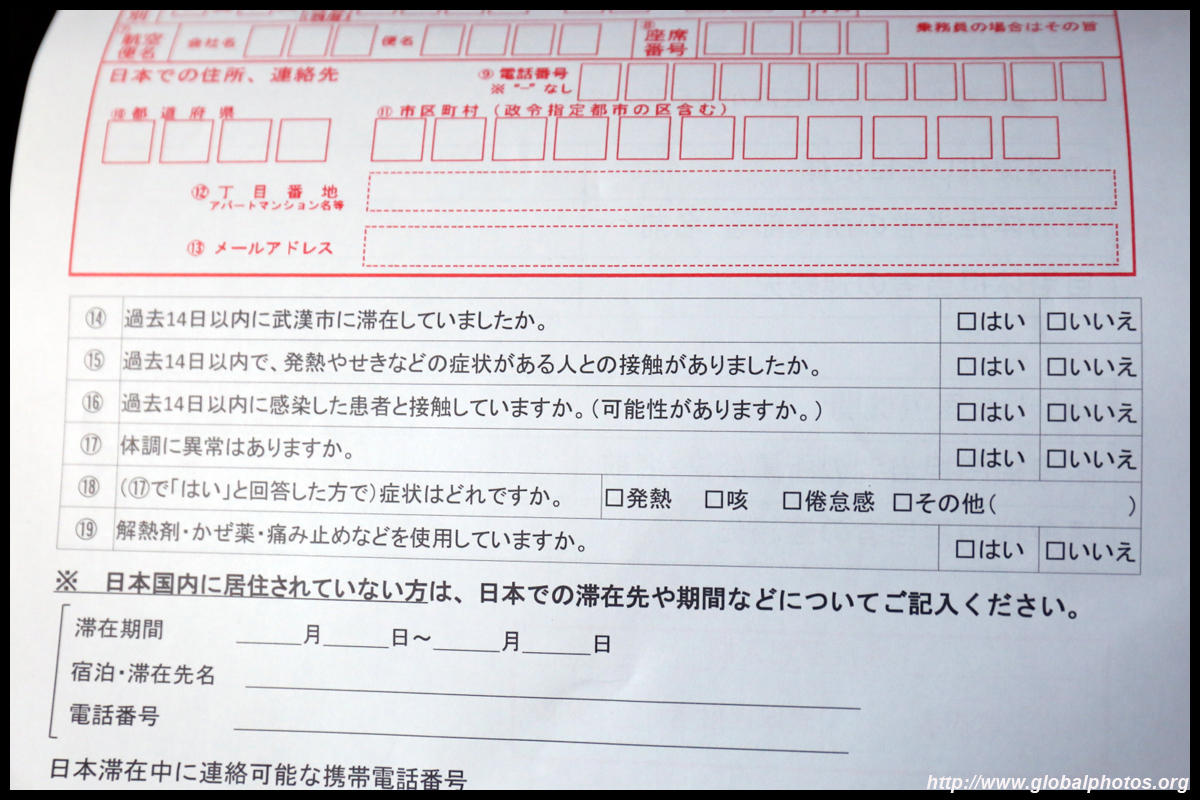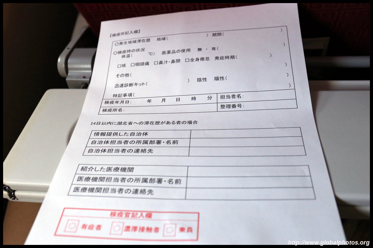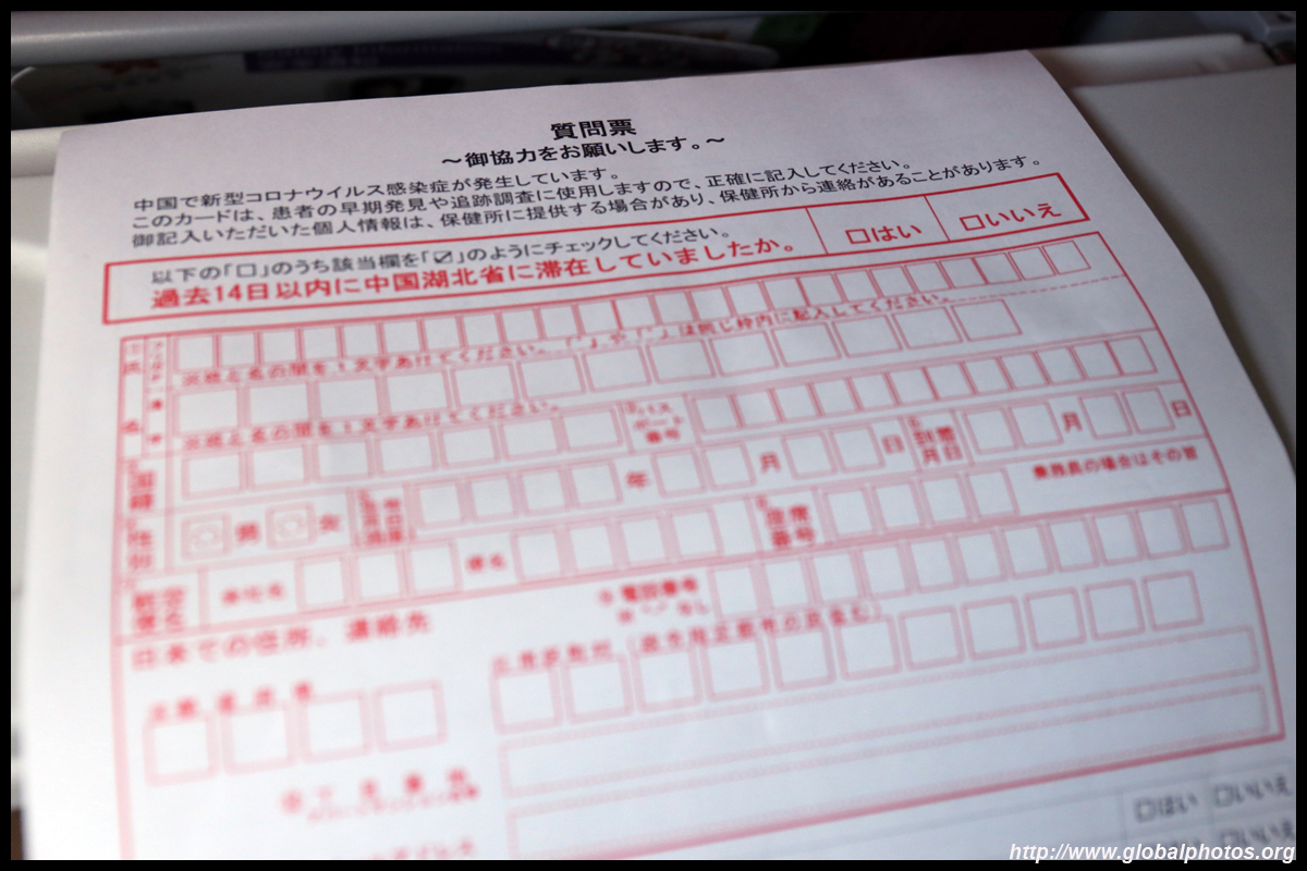 The crew had handed health declaration forms to each of us earlier during the flight. However, it was all in Japanese and I didn't want to risk mistakenly completing some crucial details and end up in quarantine. Some characters I could decipher, such as Hubei, but the yes or no boxes don't seem decipherable.