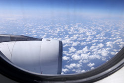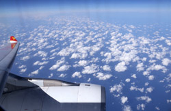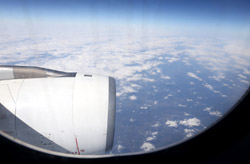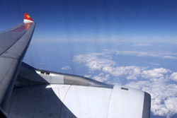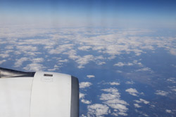 We took off under a cloudy sky, although the ceiling was low and we were above the clouds shortly.