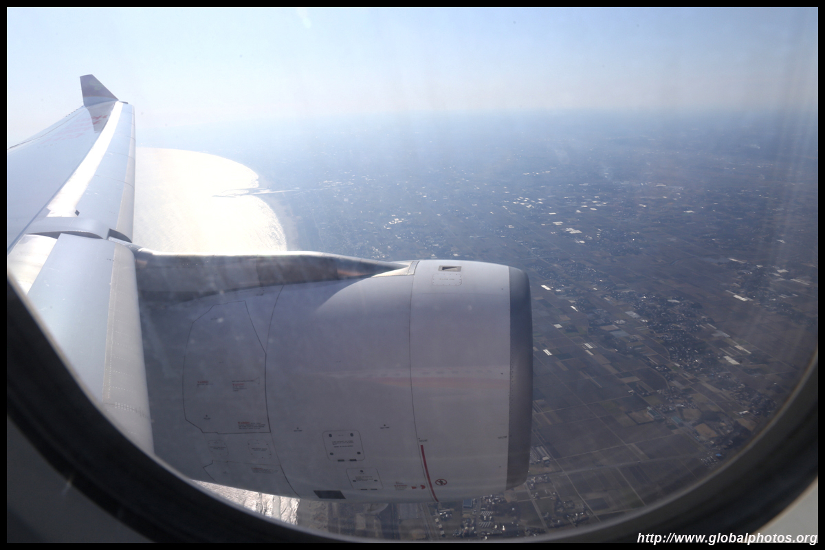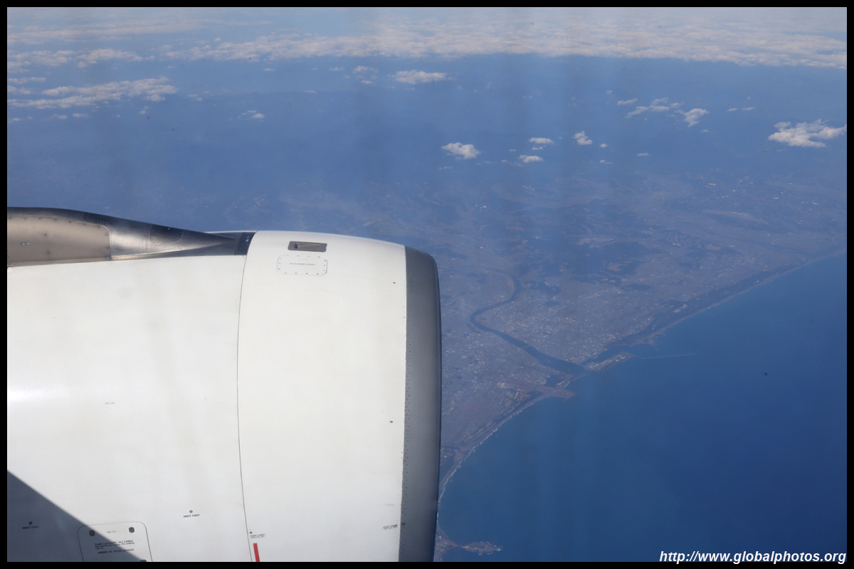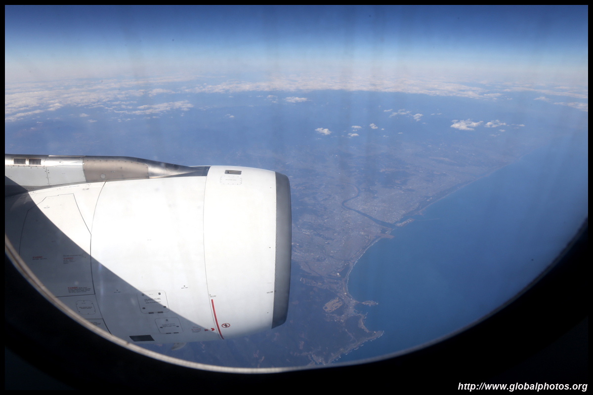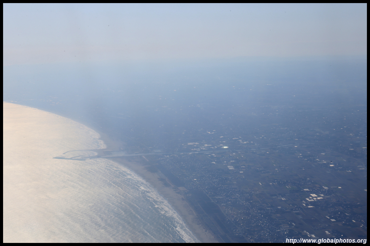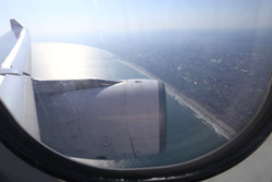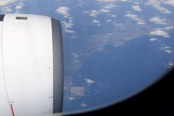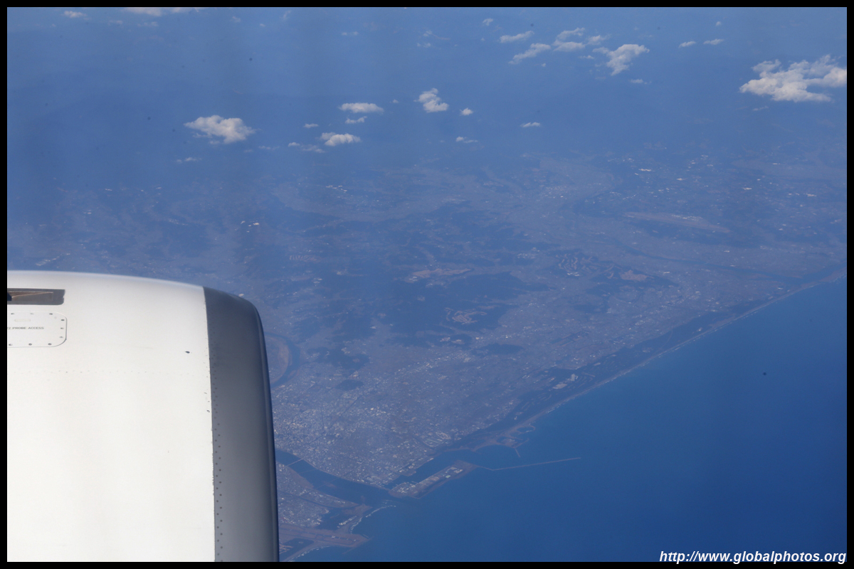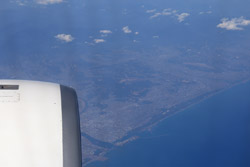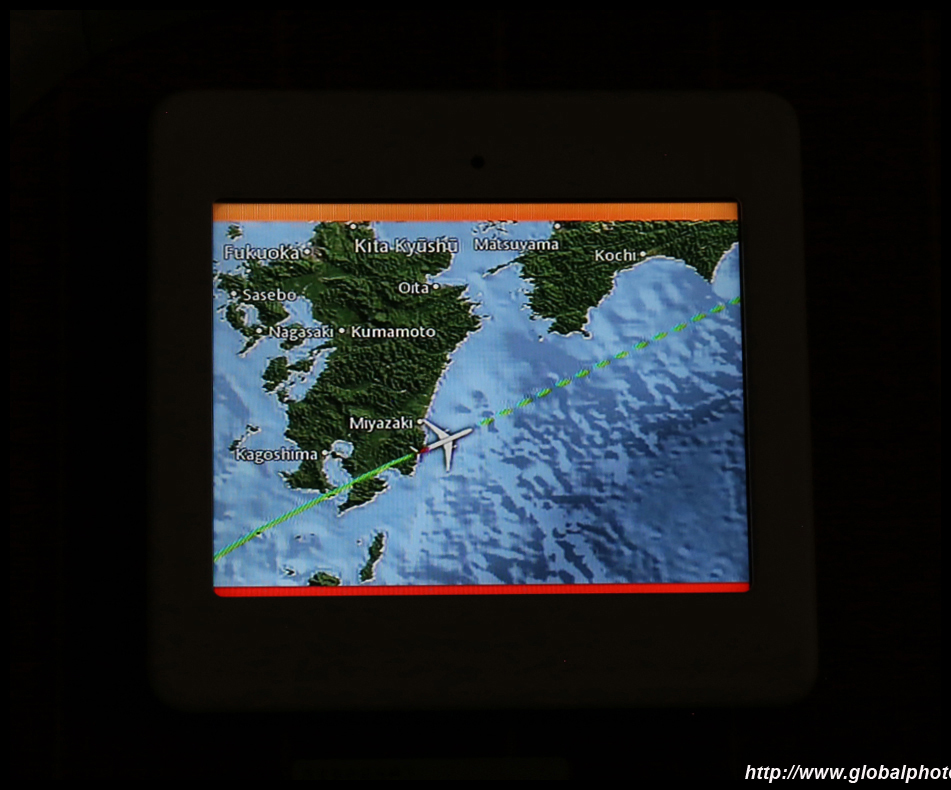 With the flight map showing the Japanese coast is near, I set my eyes for Kagoshima's volcano, Sakurajima. Soon after, we passed Miyazaki and its famous airport the juts out into the sea.