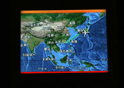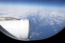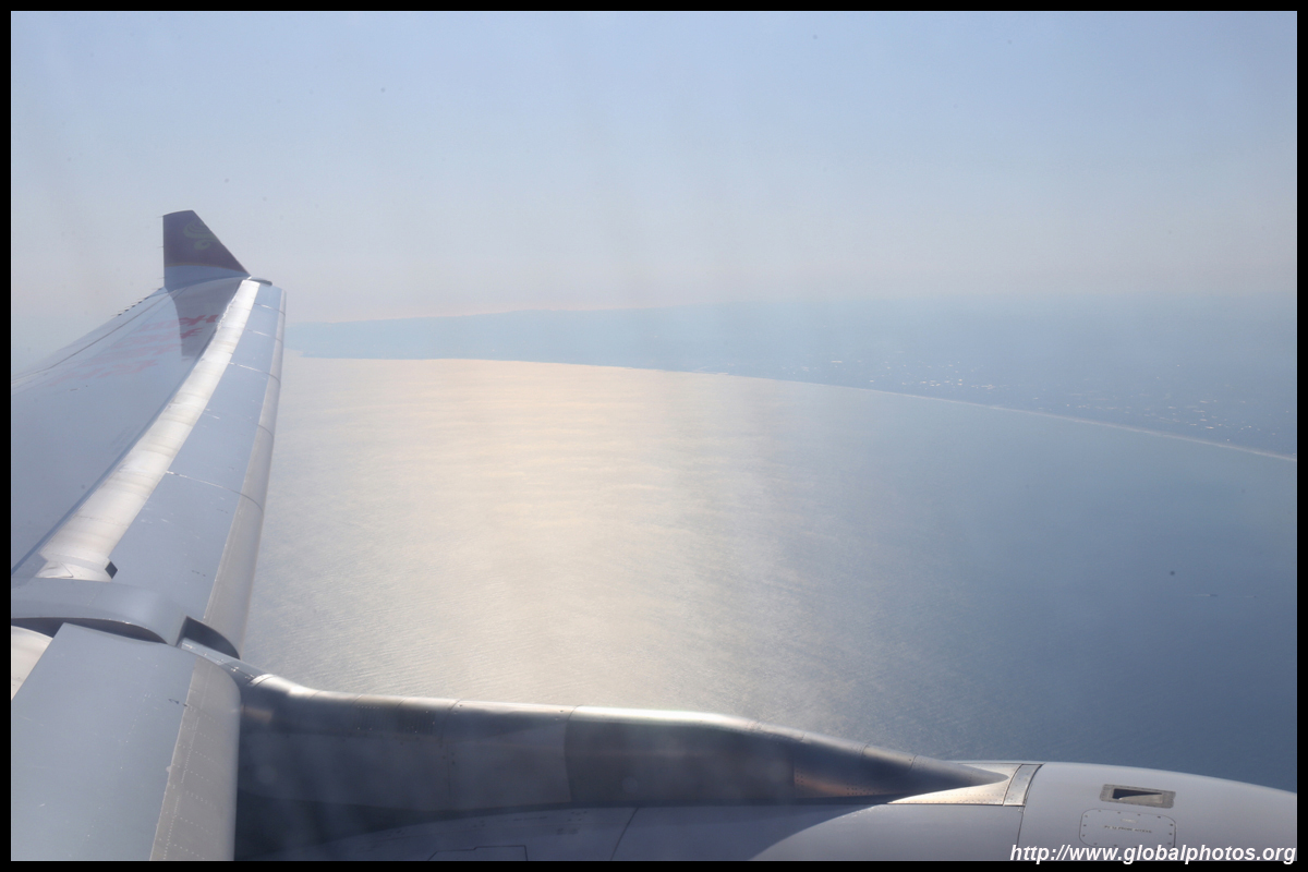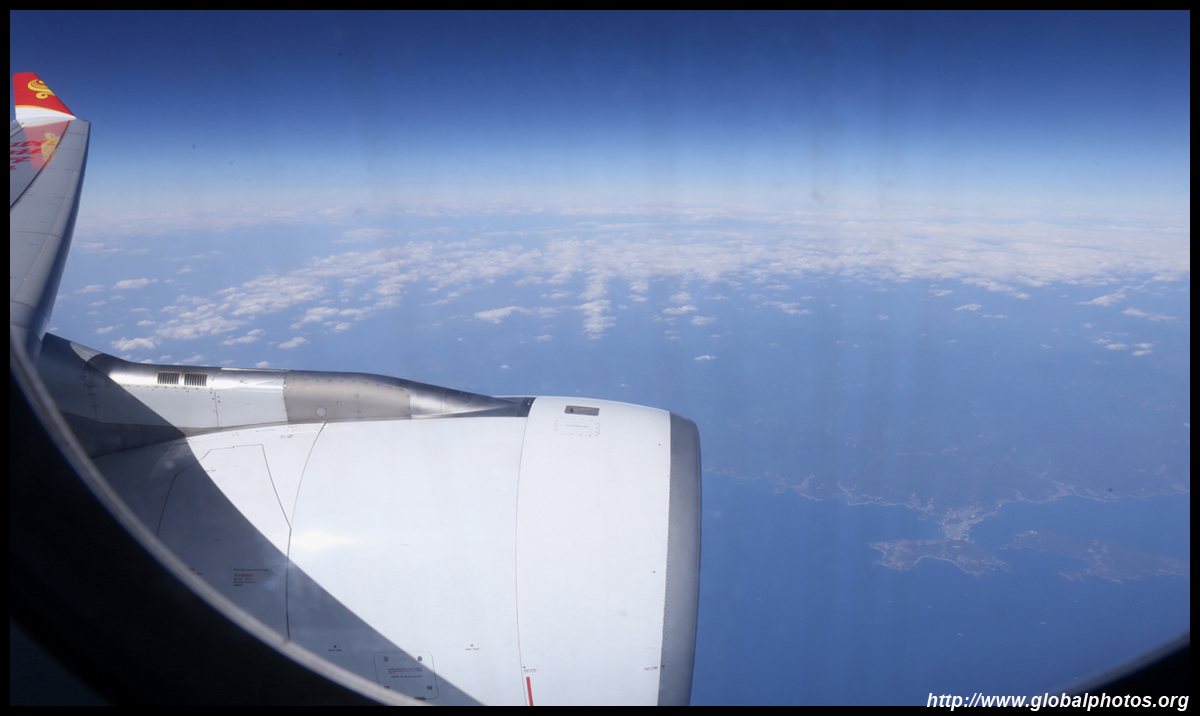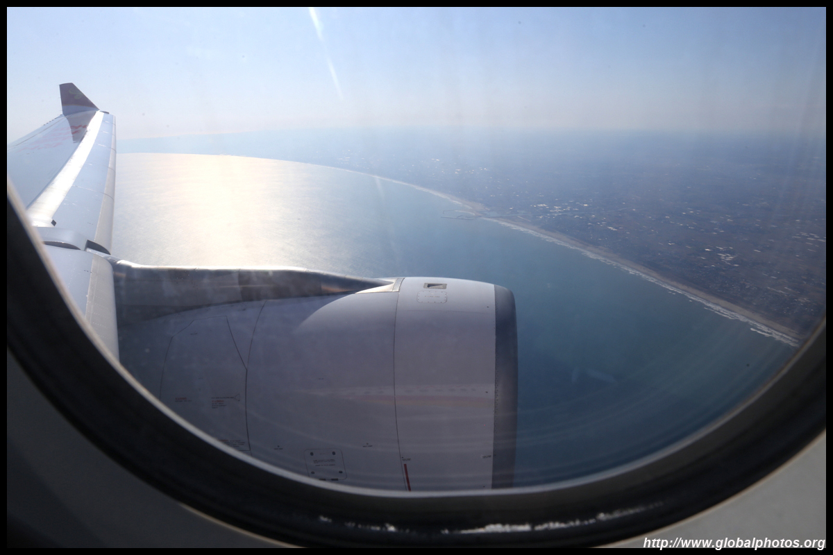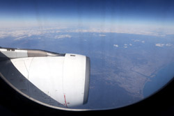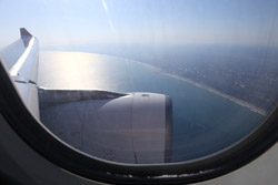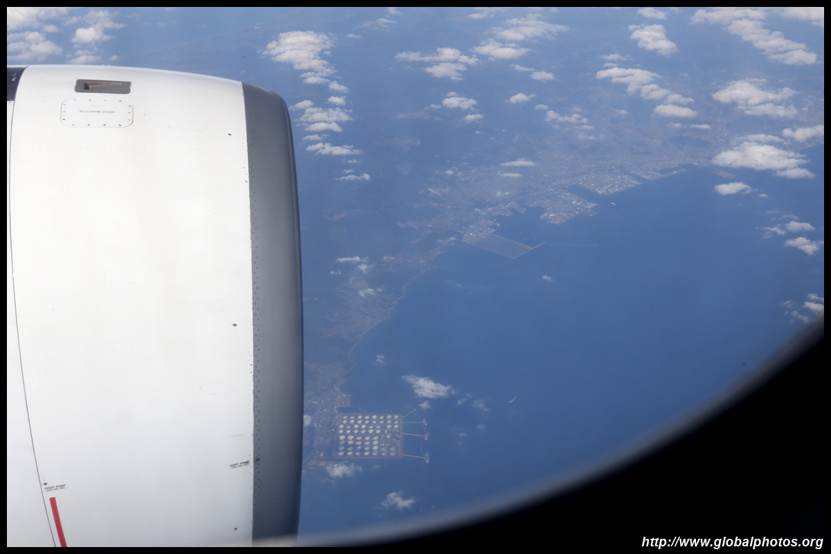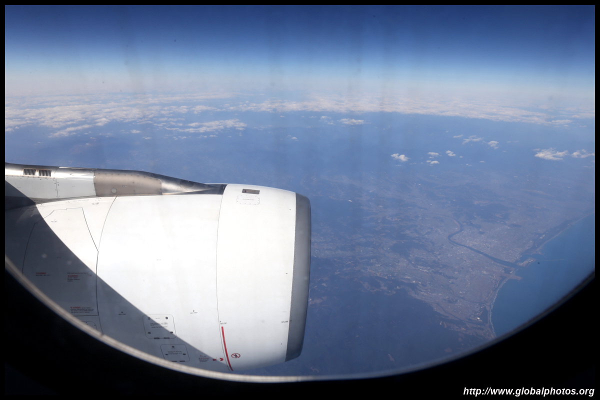 With the flight map showing the Japanese coast is near, I set my eyes for Kagoshima's volcano, Sakurajima. Soon after, we passed Miyazaki and its famous airport the juts out into the sea.