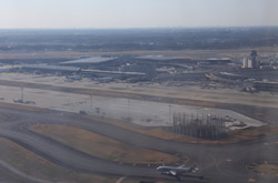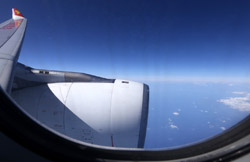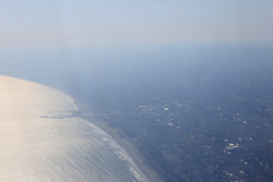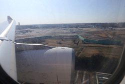 We then turned north for final approach. I couldn't spot Tokyo Bay either with the hazy blue sky.