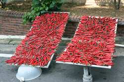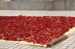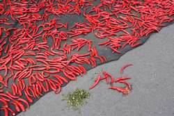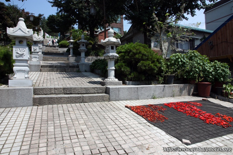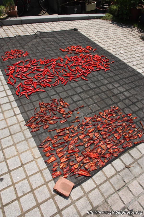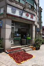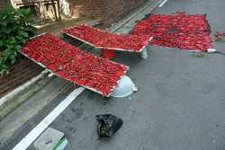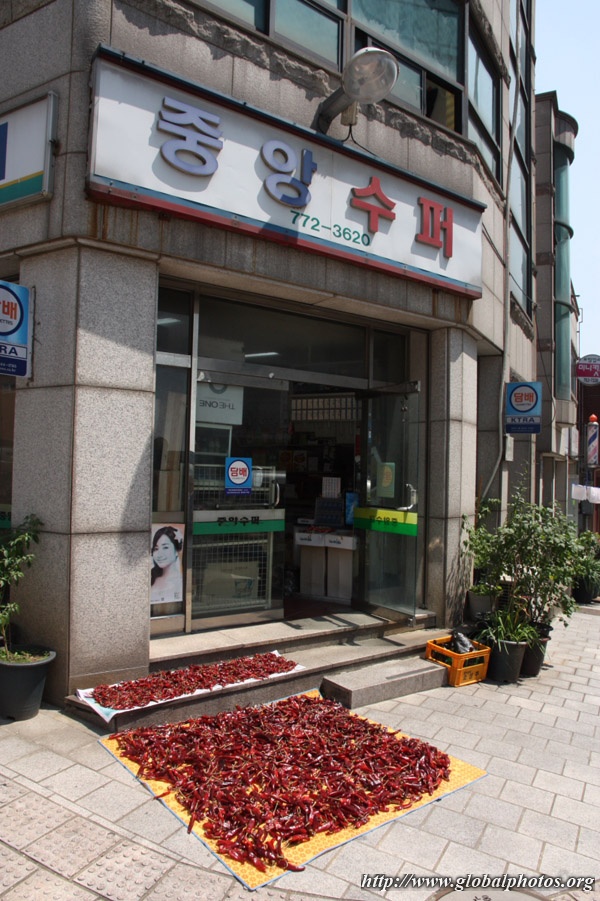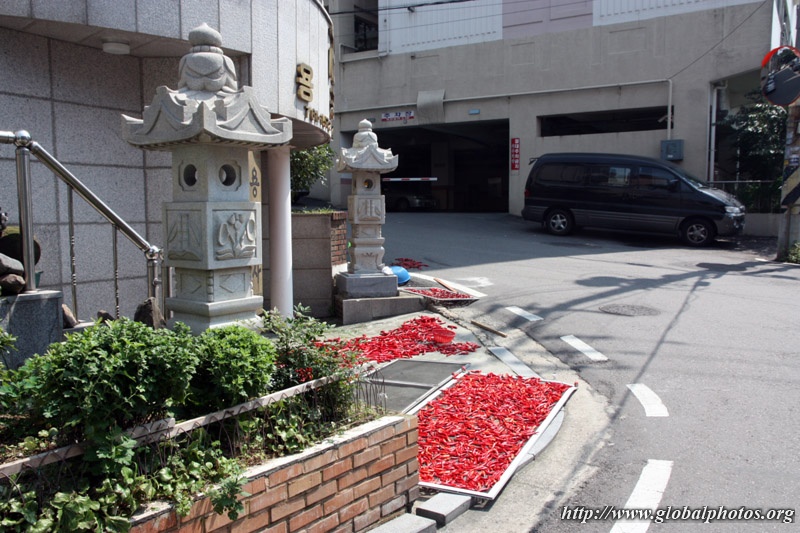 Koreans can eat very spicy foods, hence I wasn't surprised to see hot peppers being put out to dry on this sunny day.