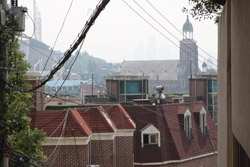 This staircase marks the border between the Qing and Japanese concessions. Even the lamps were designed differently on each side.