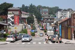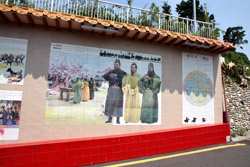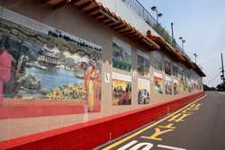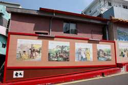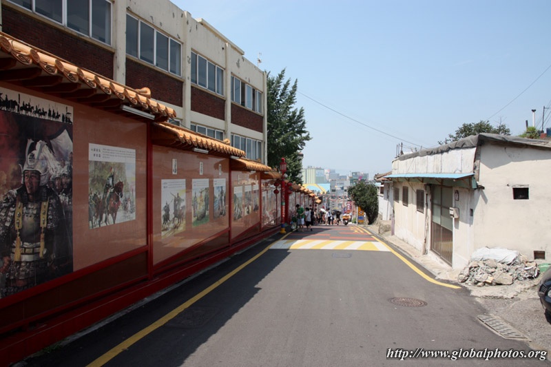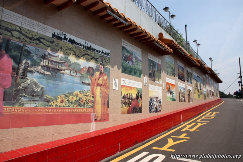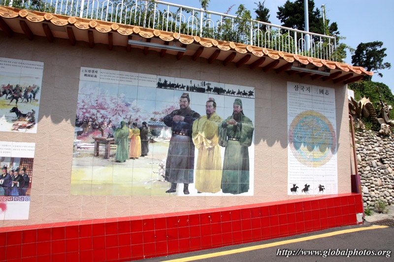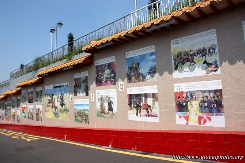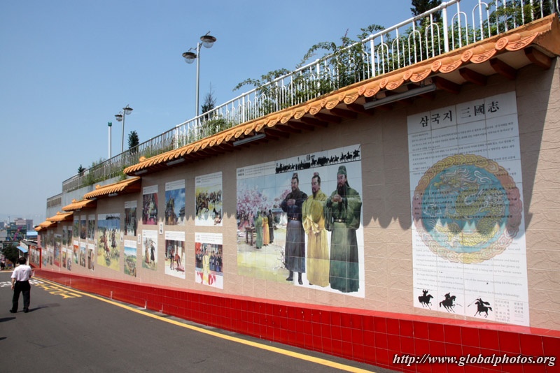 The Samgukji Mural Street is a 135-m long wall that depicts 77 scenes from the Romance of the Three Kingdoms.