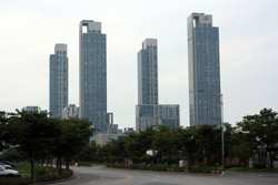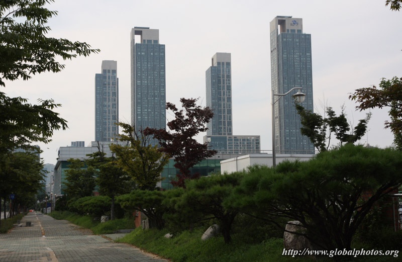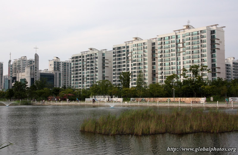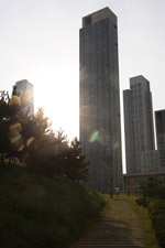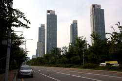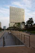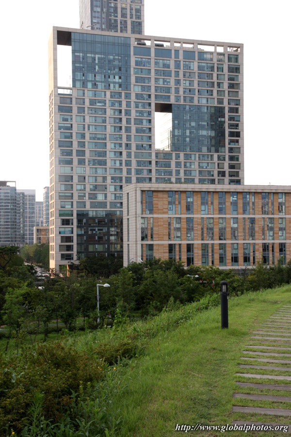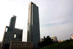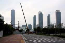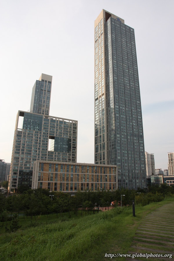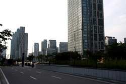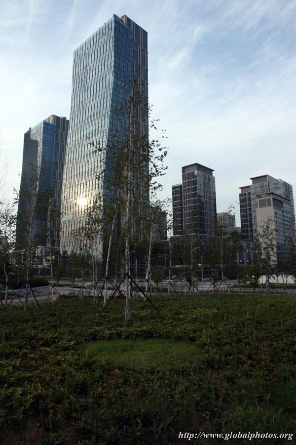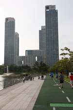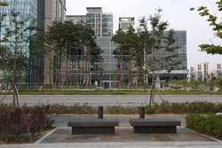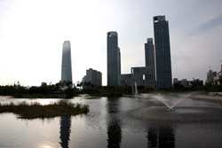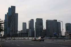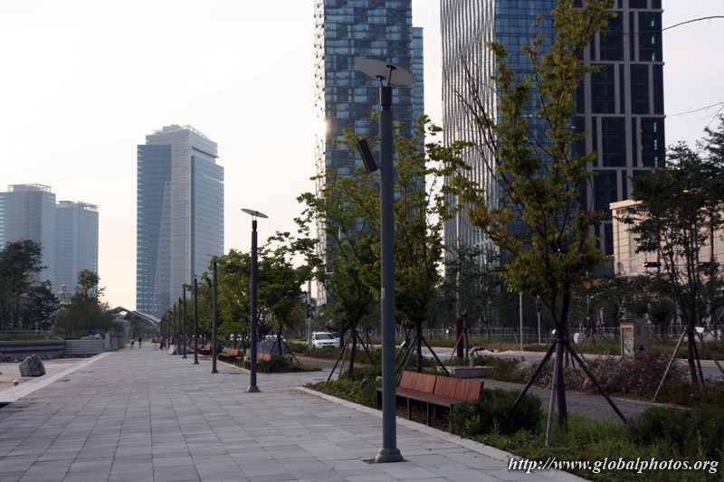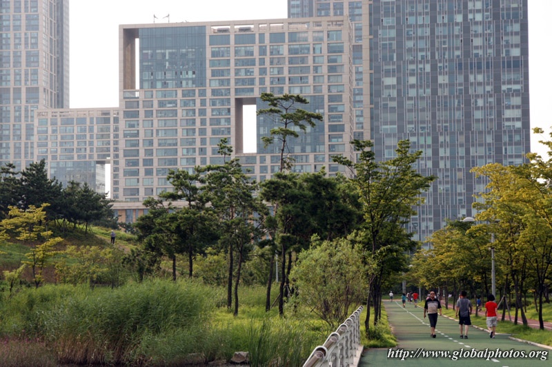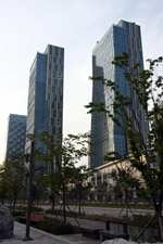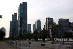 Songdo is a new business district built south of Incheon. Phase 1 opened in 2009, and the masterplan is to provide for residential, commercial, and open spaces on the 1500-acre site.