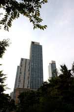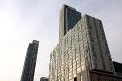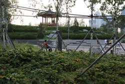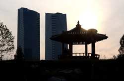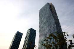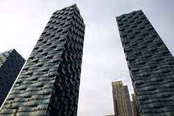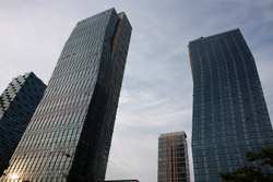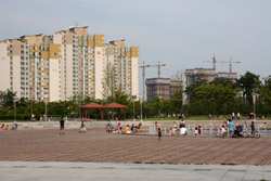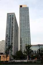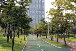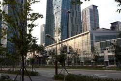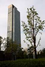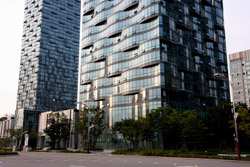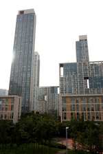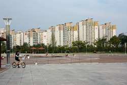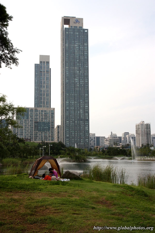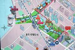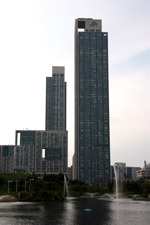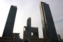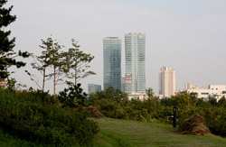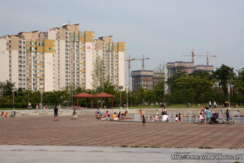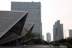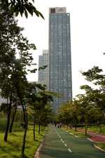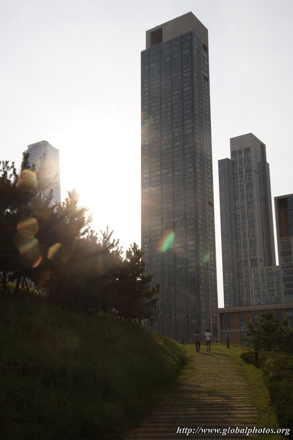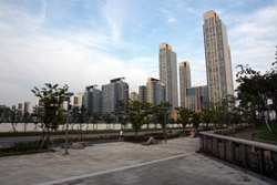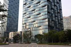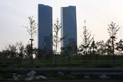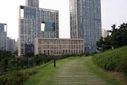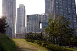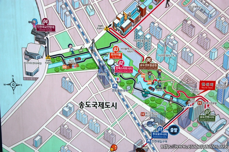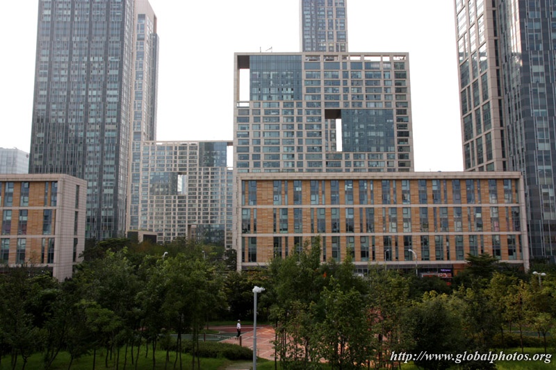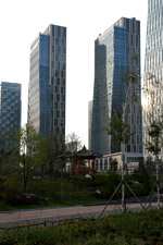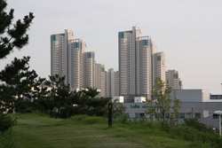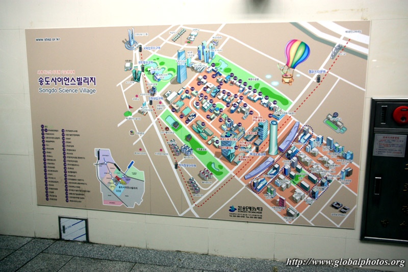 Songdo is a new business district built south of Incheon. Phase 1 opened in 2009, and the masterplan is to provide for residential, commercial, and open spaces on the 1500-acre site.