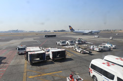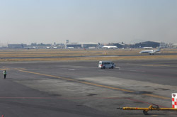 Mexico City's airport is quite close to town. It is directly accessible by metro, but is not recommended during rush hour thanks to plenty of pickpockets. Metrobus' Line 4 has a more premium service into the historic centre and cops are on the bus to give you a perception of safety. However, at 30 pesos a person, it is actually cheaper to Uber if you have a larger group of 3 or more.