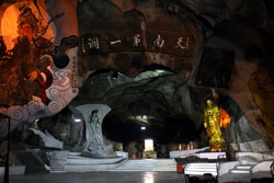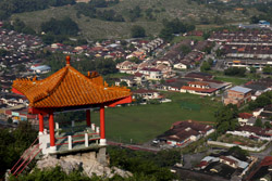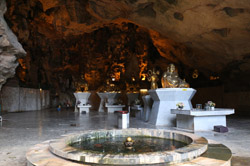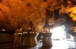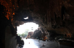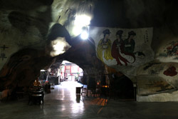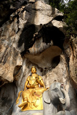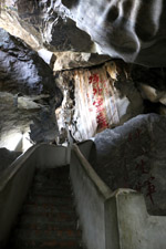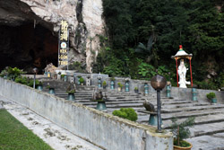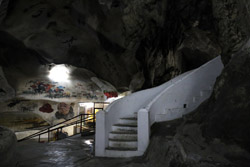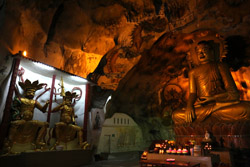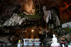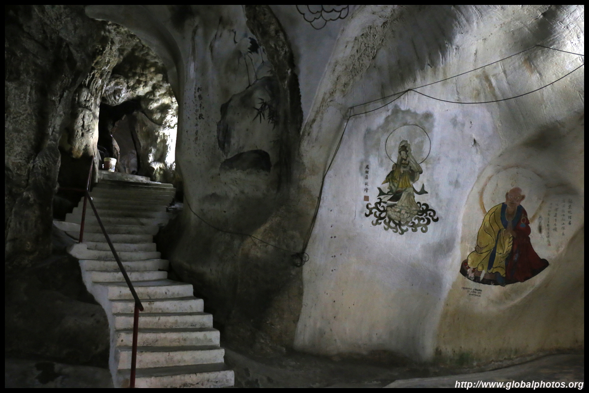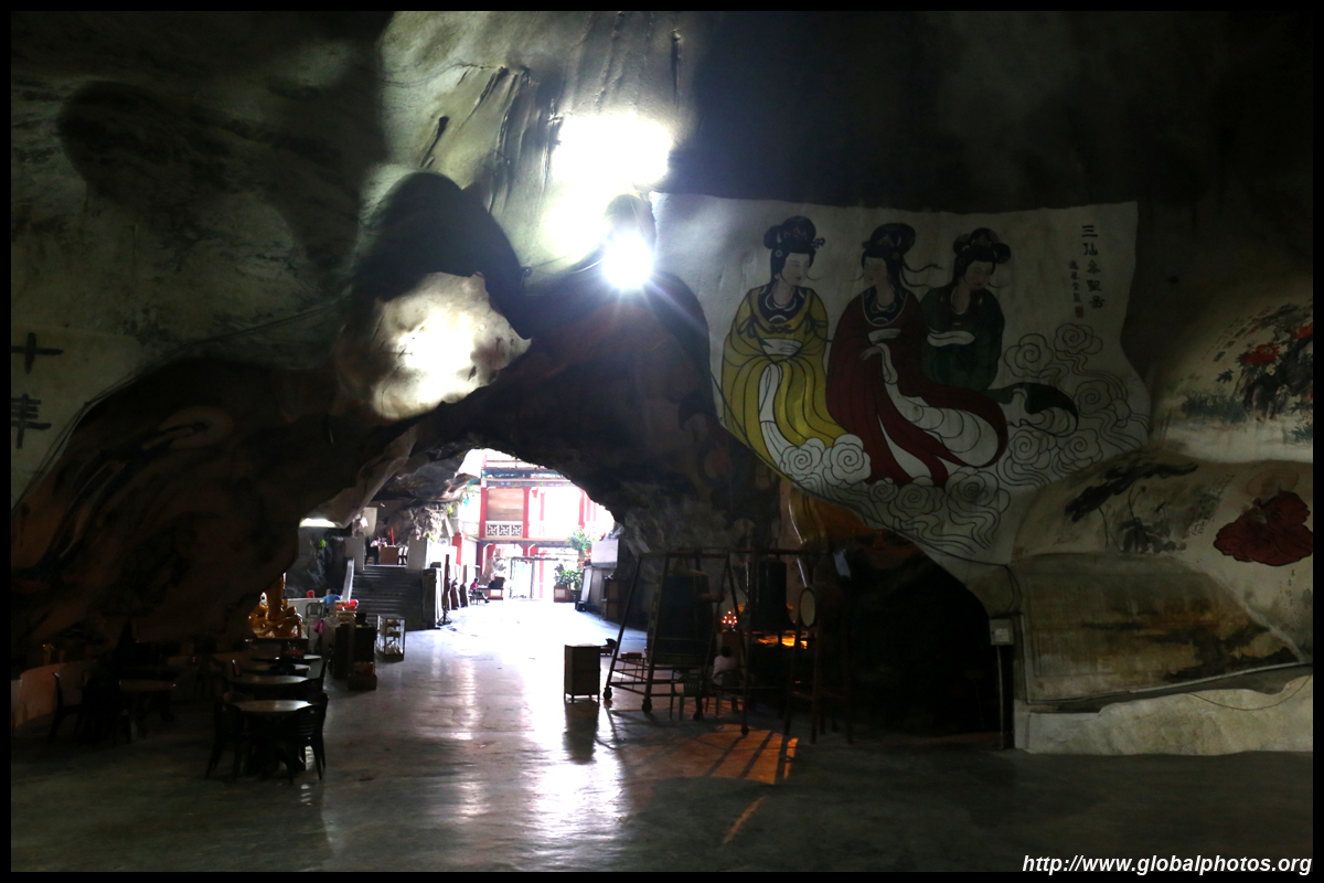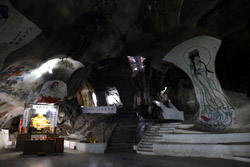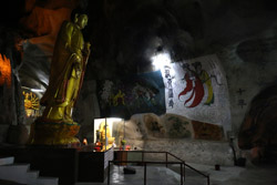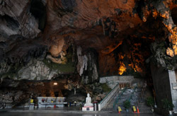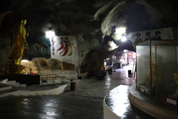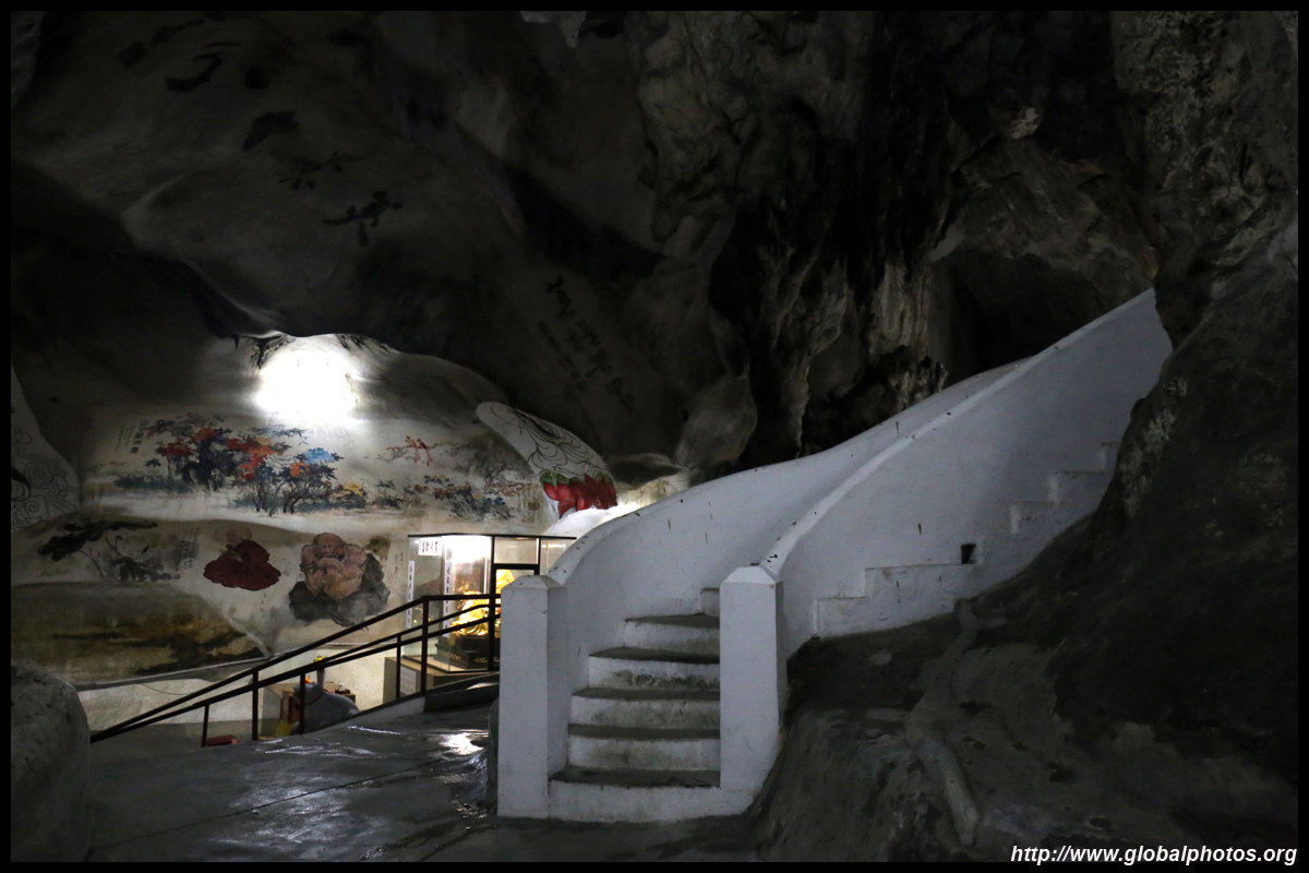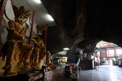 Perak Cave Temple is on the other side of town north of the city. It has many murals along the cave walls but the bonus is the long staircase up to the top of the hill for a nice view of Ipoh's surroundings. It is an active worshipping temple and entrance is free.