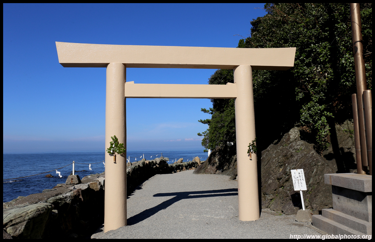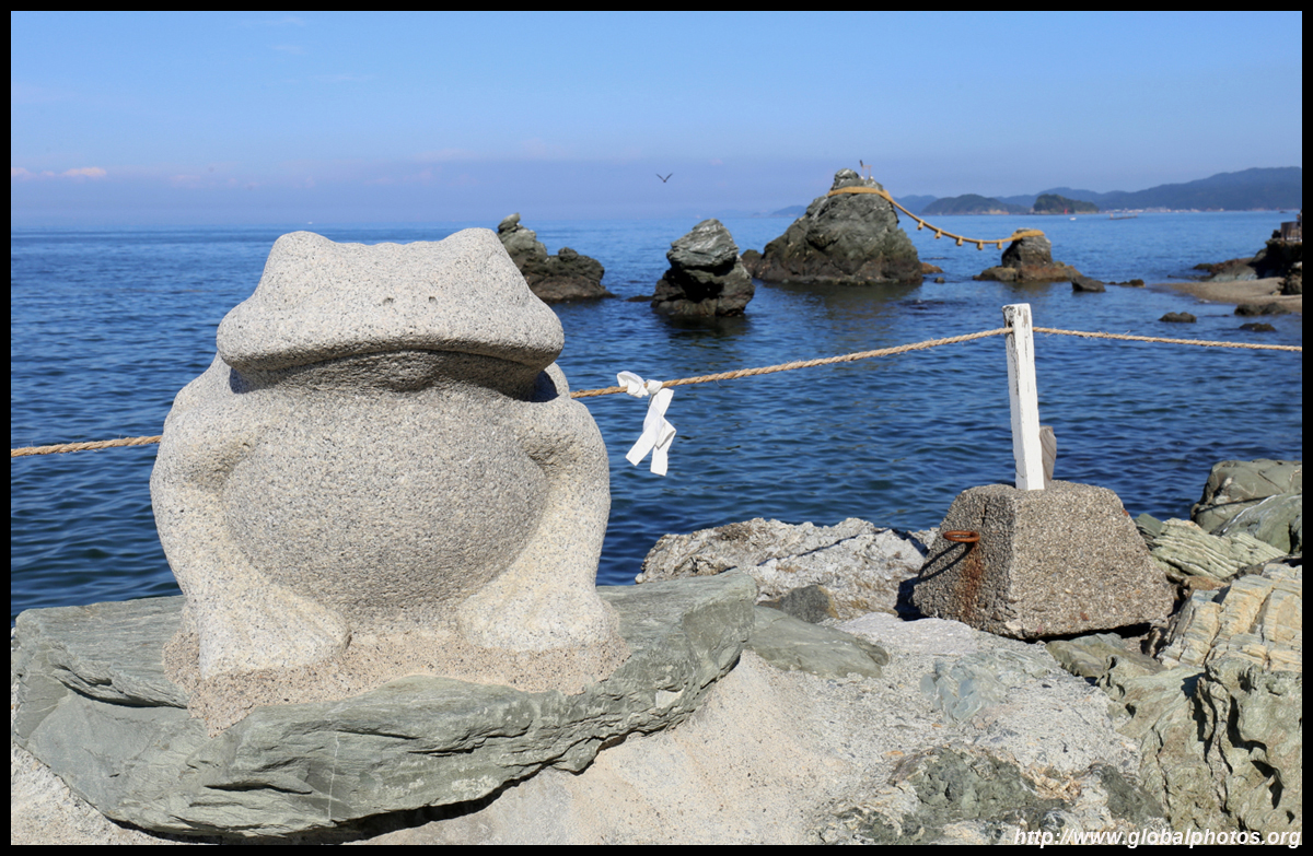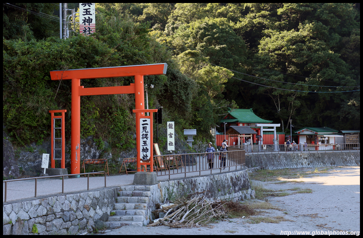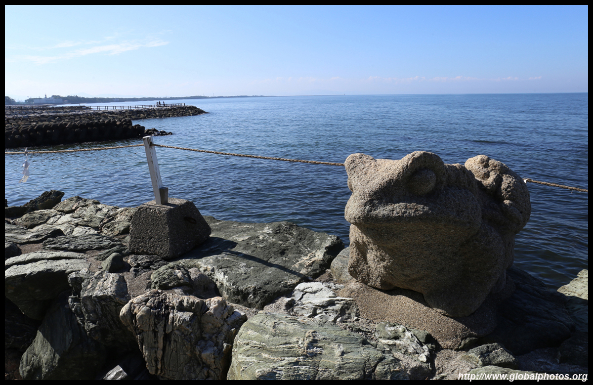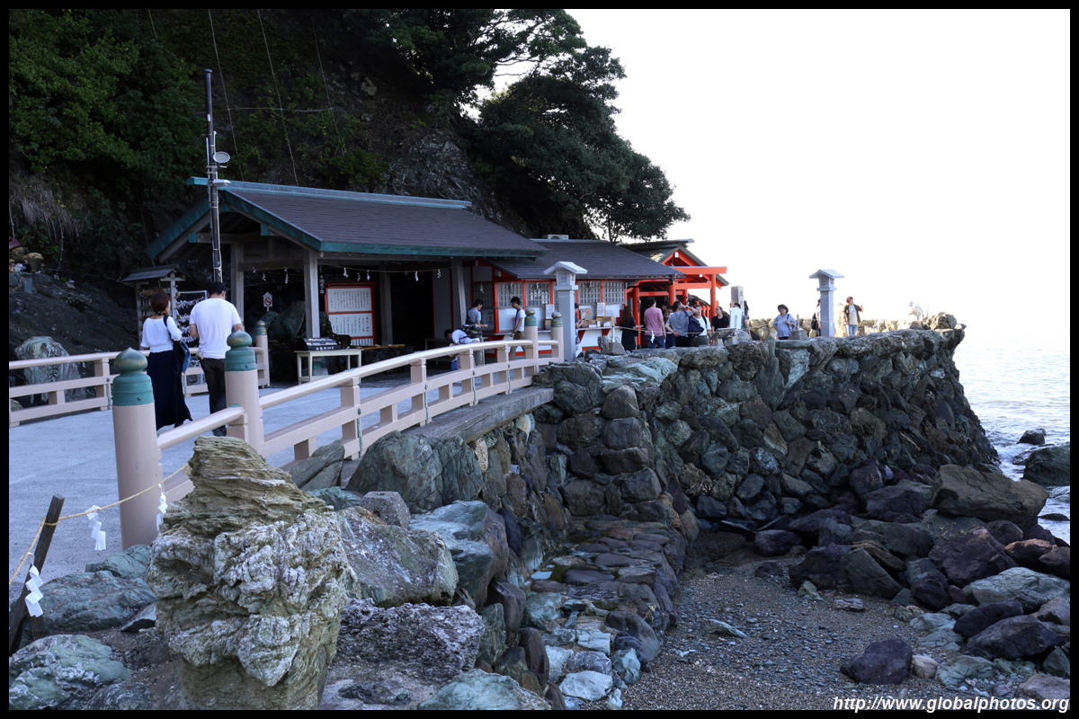 The bus drops you off just after a short tunnel at the aquarium. Then you backtrack and follow the path towards the coast. 2 rocks just off the waterfront have been enshrined as "husband and wife" in a sunrise-worshipping ritual. On the Summer Solstice, the sun rises in between these 2 rocks.