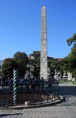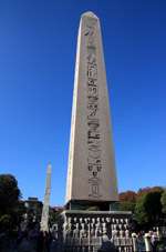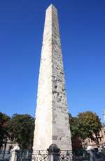 The Egyptian Obelisk was taken from the Temple of Karnak in Luxor in AD 390. Believed to date from 1500 BC, the obelisk was carved to celebrate the victories of Pharaoh Thutmosis III. However, only the upper third remains from the original move from Egypt in the 4th century.