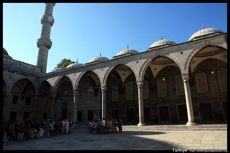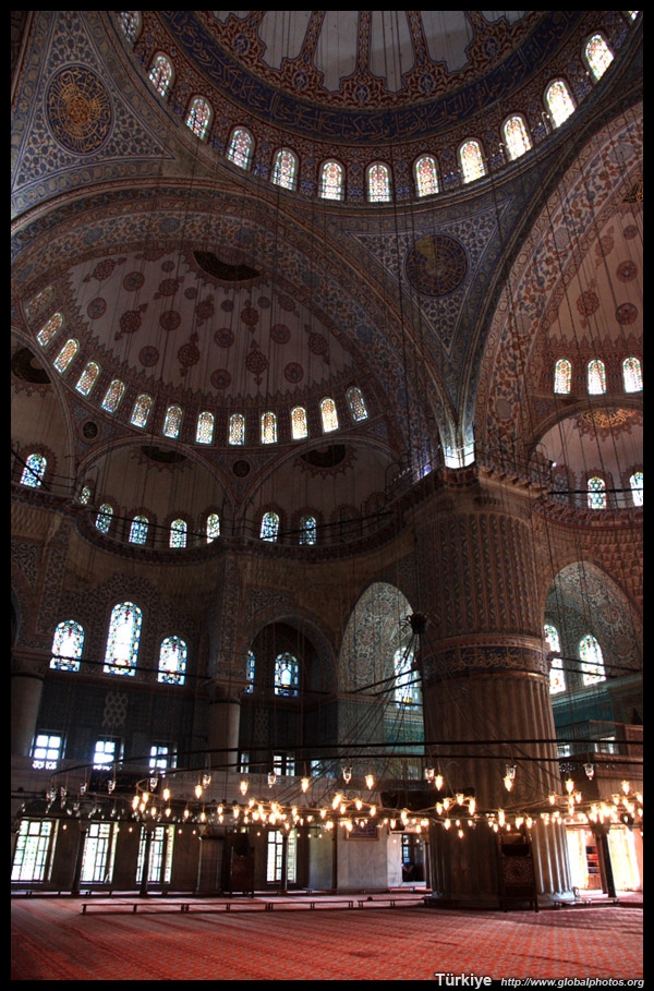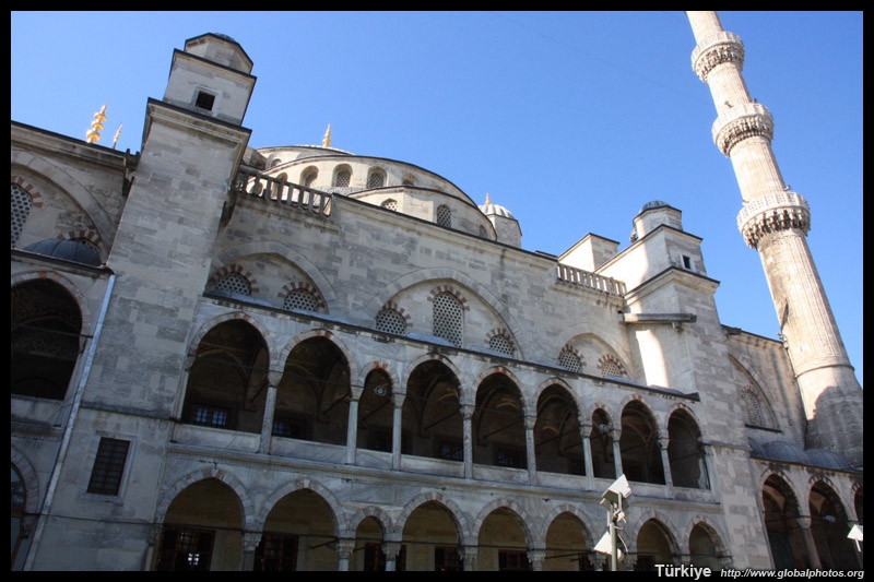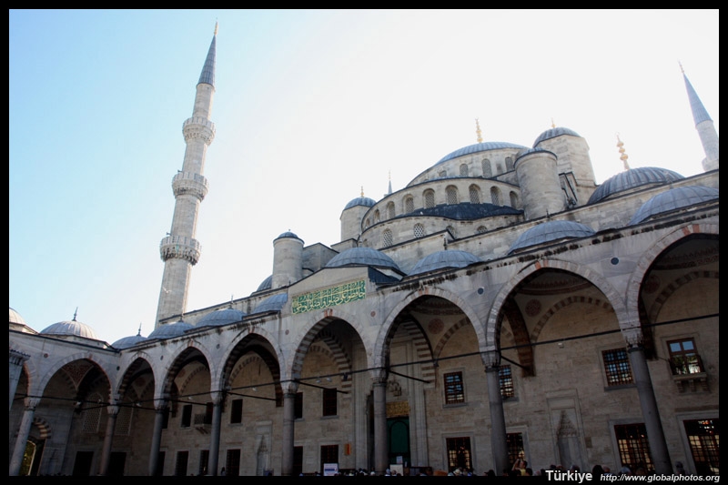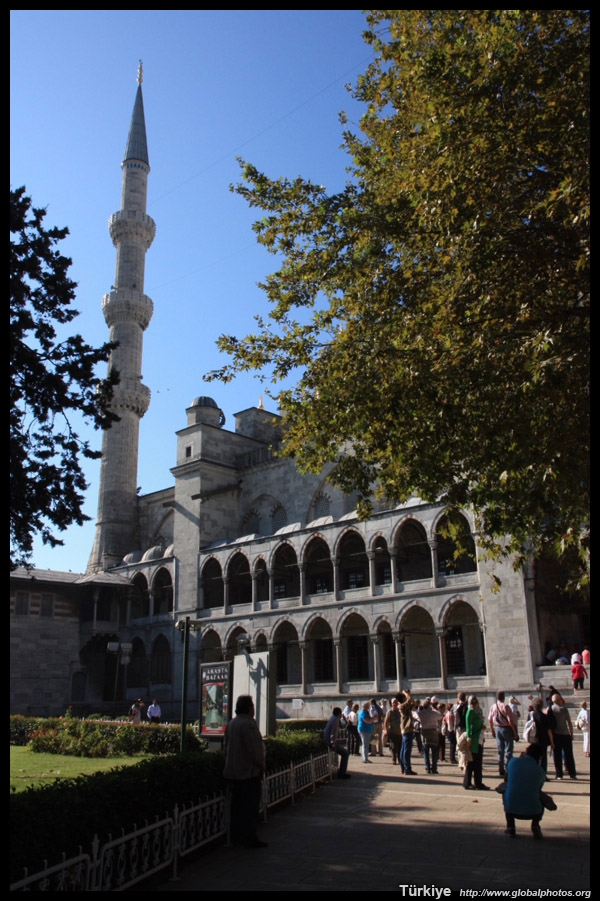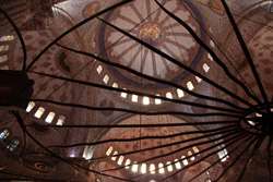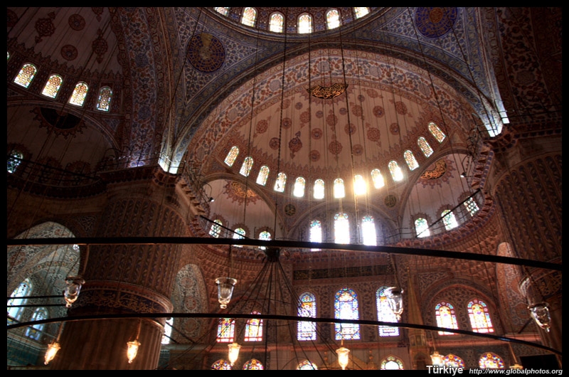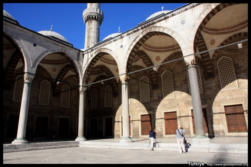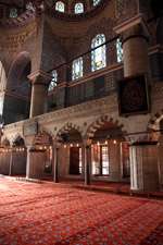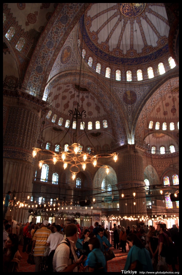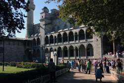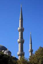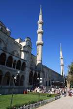 The Blue Mosque was commissioned by Sultan Ahmet I in the early 1600's as an imperial mosque. With 6 minarets, it stirred up rivalry with Mecca, which was not kindly received.