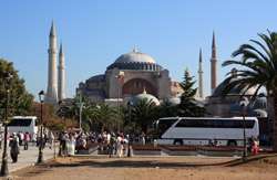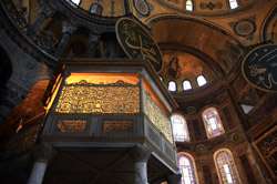 Inside, stunning Byzantine mosaics grace the mosque.