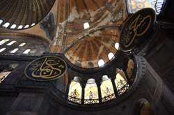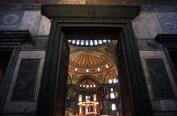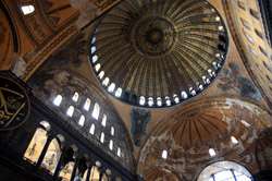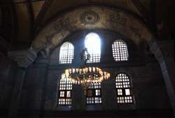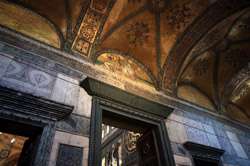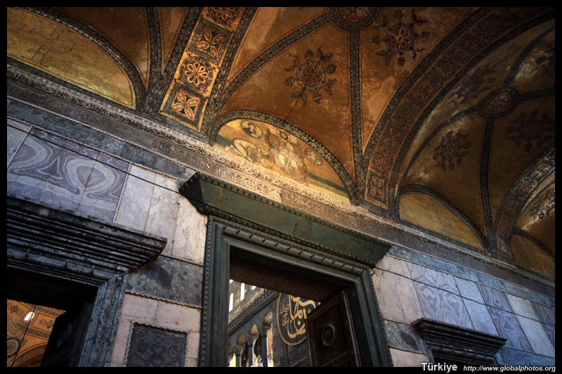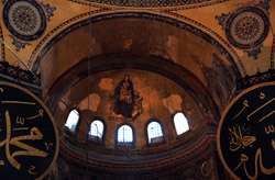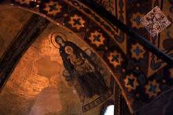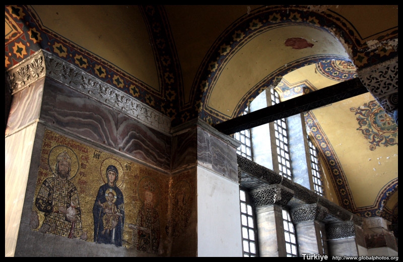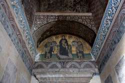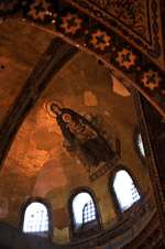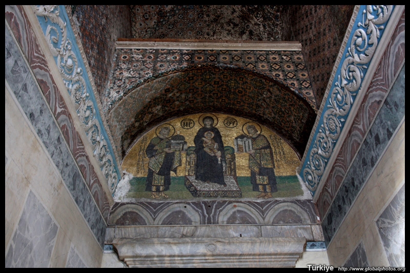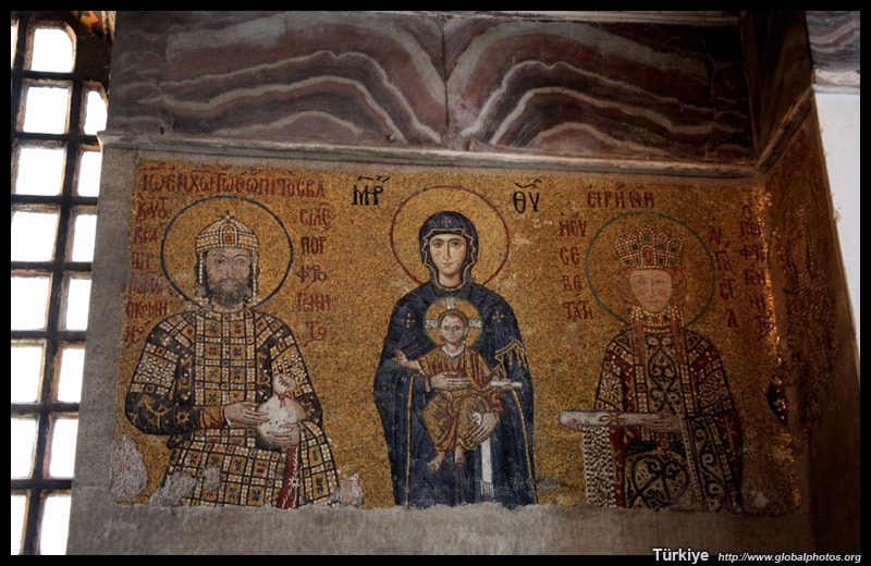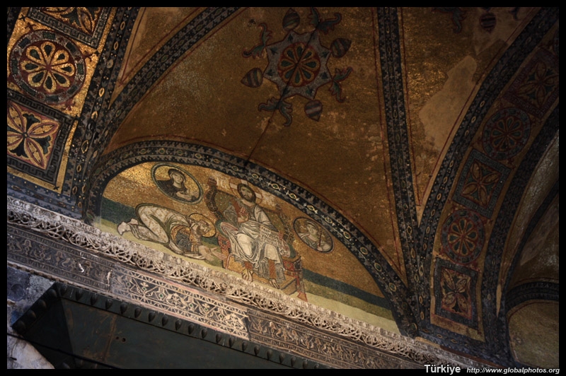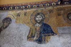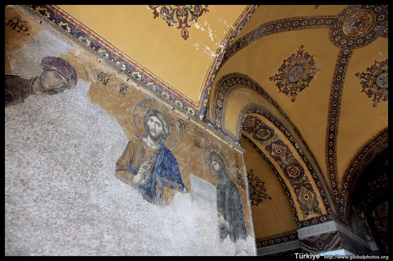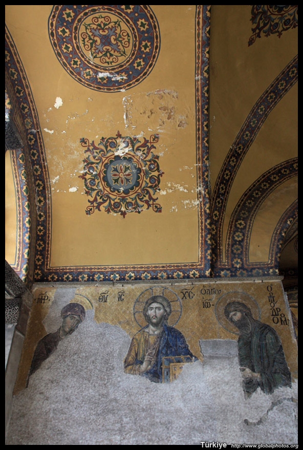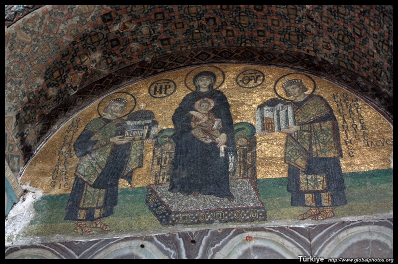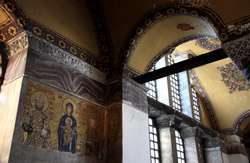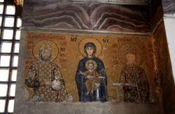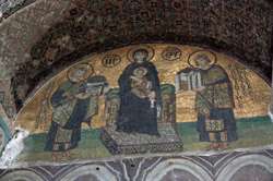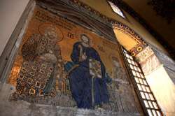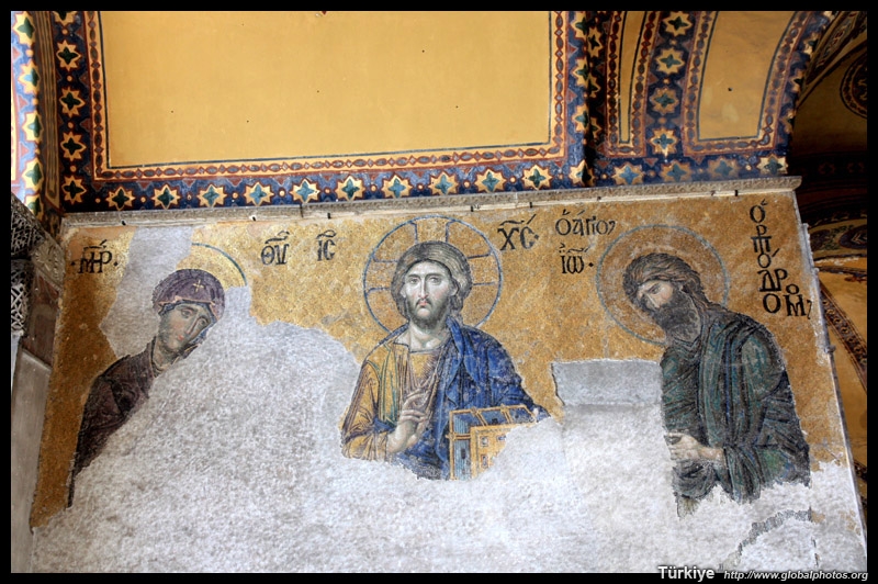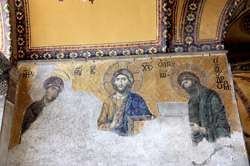 The Deesis Mosaic shows the Virgin Mary and John the Baptist with Christ.