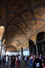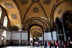 A sloping ramp brings visitors to the upper gallery, where great views of the mosque can be found. This is also the place to admire the intricate and colourful mosaics in close proximity.