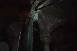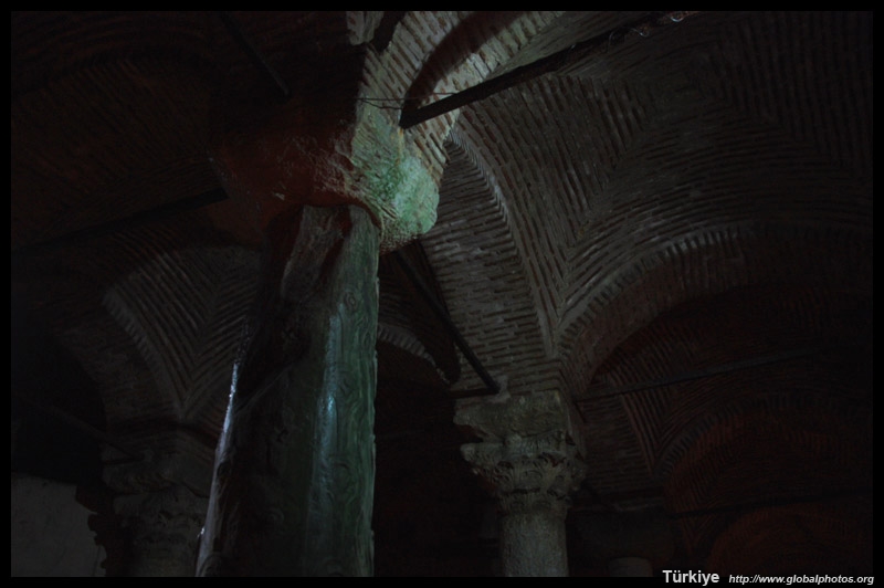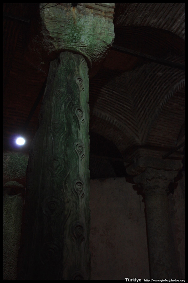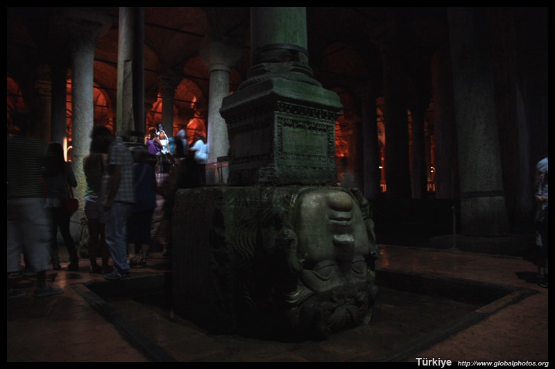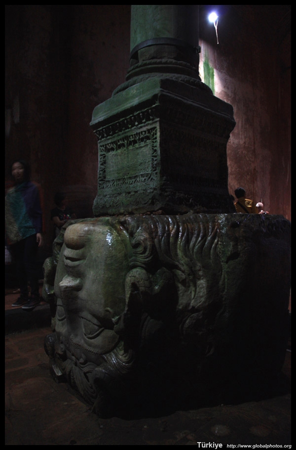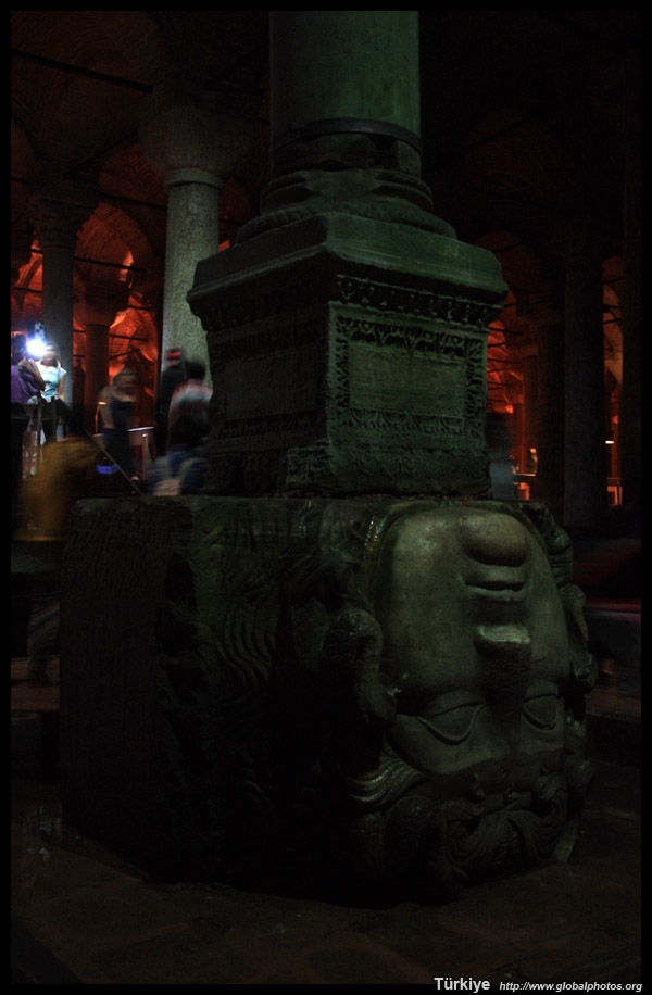 This column rests on a head sculpture depicting Medusa.