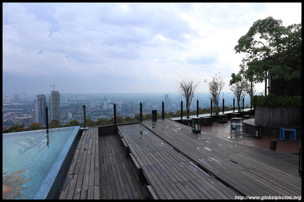 Across the street, I headed up the Cloud Lounge rooftop bar on the 49th floor of The Plaza. The views are quite good and drinks very affordable by international standards. Too bad it was still rainy season.