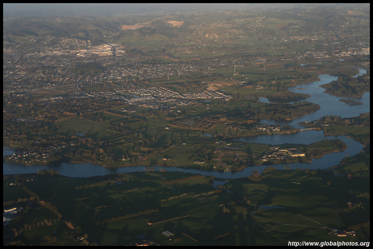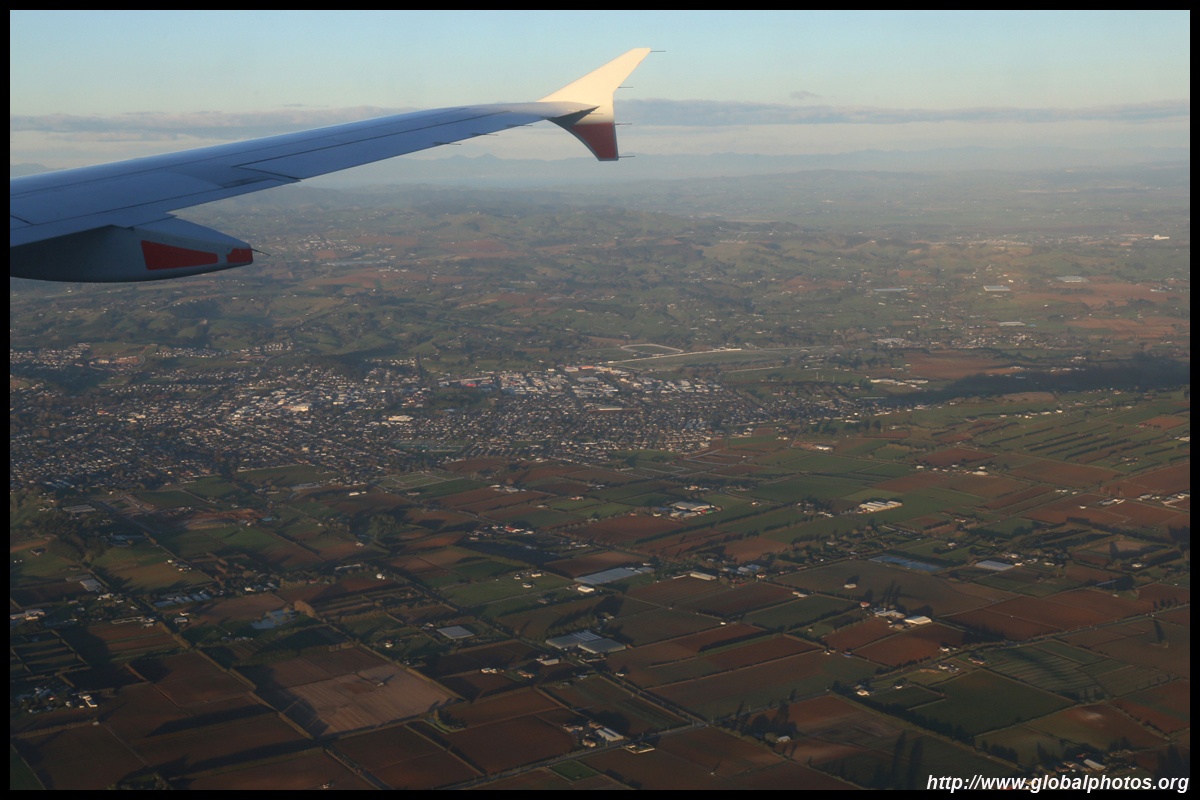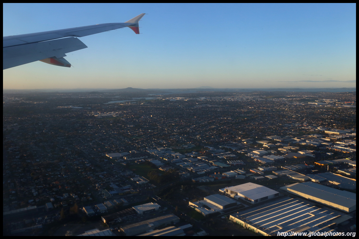 After an exciting hour of taking aerial photos of South Island, the announcement came that we were descending into Auckland. They were also experiencing good weather today, and I was able to make out Sky Tower in the distance on final approach. There wasn't much of a skyline but lots of single family home sprawl all over the place.