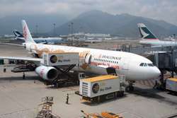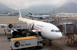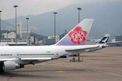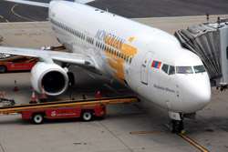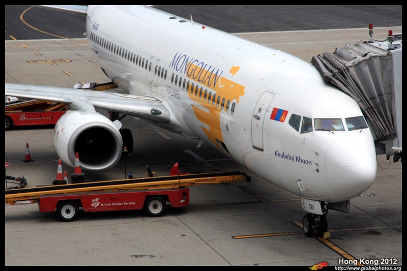 After all these years flying out of HKG, I had never spotted Mongolian ever. They're a relative newcomer, but I was surprised to see them here at lunch time.