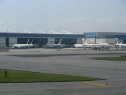 After a quick snack and a quick walk around the lounge and the TV area, I headed for the buses to the satellite terminal and did some more plane spotting. The satellite terminal consists of only 1 floor of gates, shared by departures and arrivals. Some areas were blocked off from window access for arrival corridors, so it took a bit of exploring to find the right spotting locations.