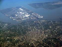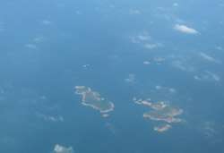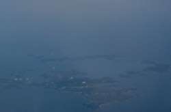 We passed by a number of small islands, an indication that landing was near. Some of these had lovely beaches and what looks like great diving opportunities. Given how north this place is, I was surprised at how tropical the sea looks!
