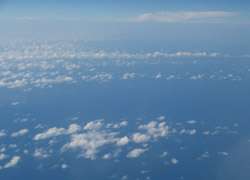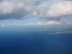 Taiwan was about half way between Hong Kong and Okinawa. The skies stayed clear as we left Taiwan and flew over the Pacific Ocean.